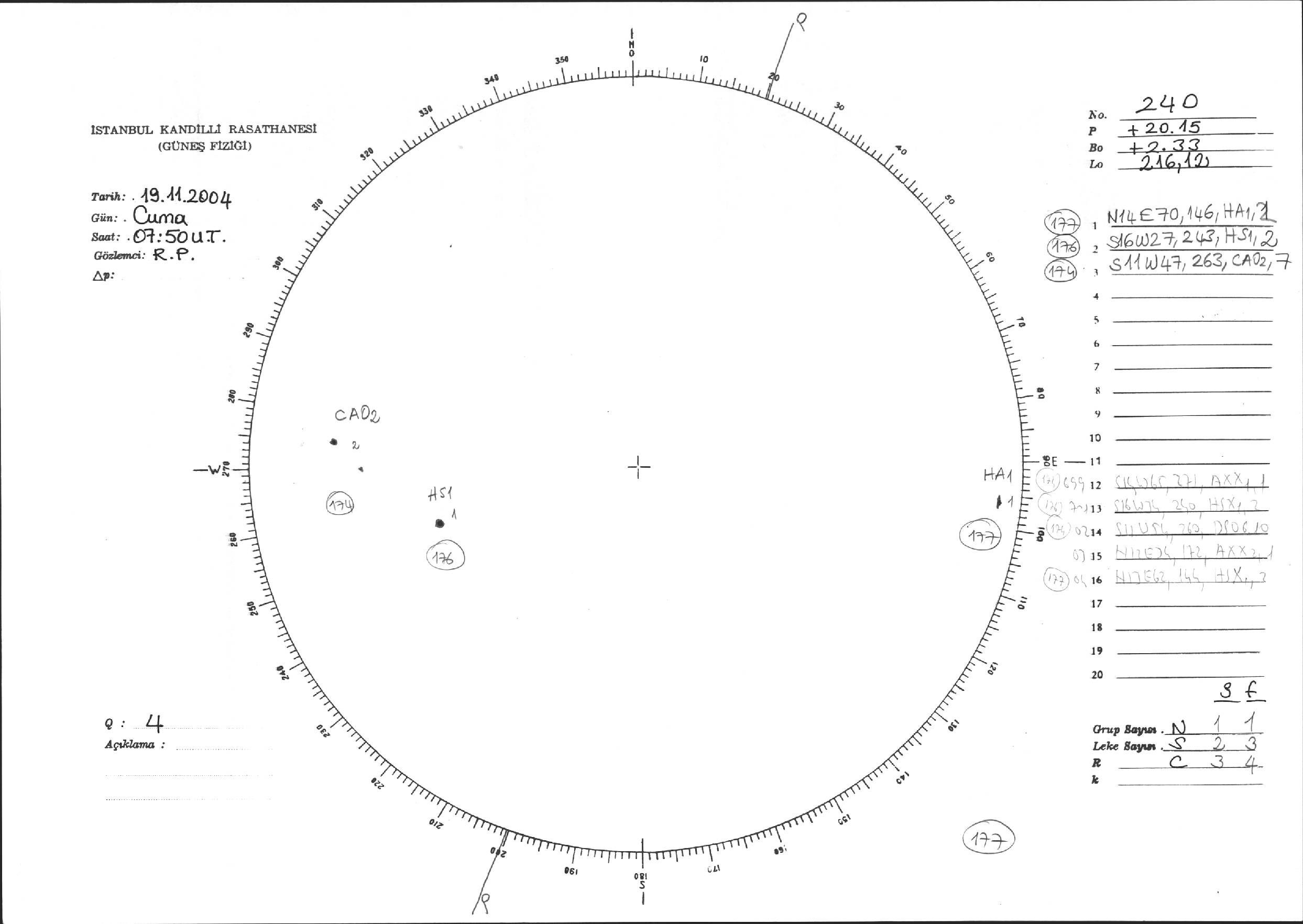 Güneş Lekesi Çizimi - 19.11.2004