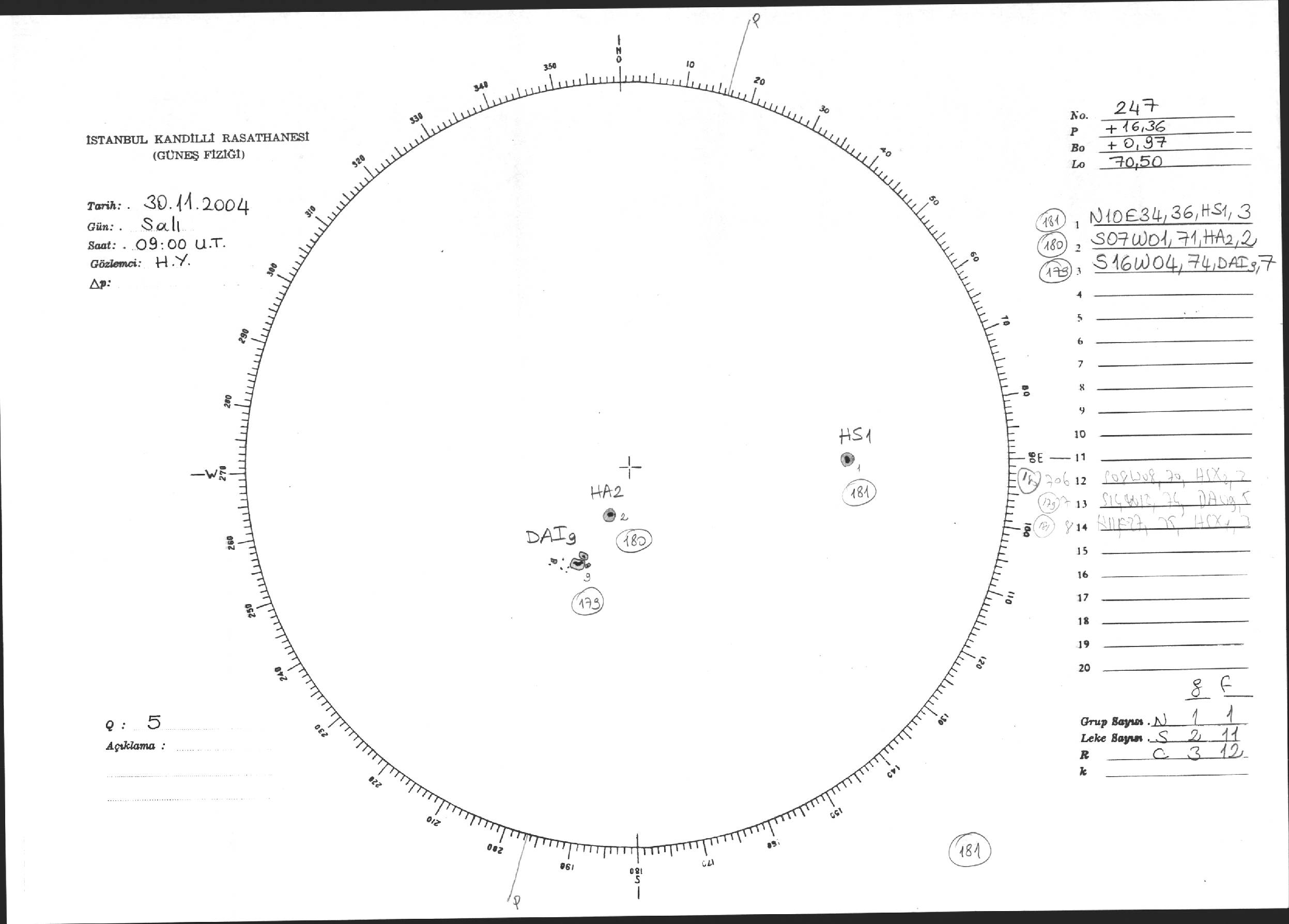 Güneş Lekesi Çizimi - 30.11.2004