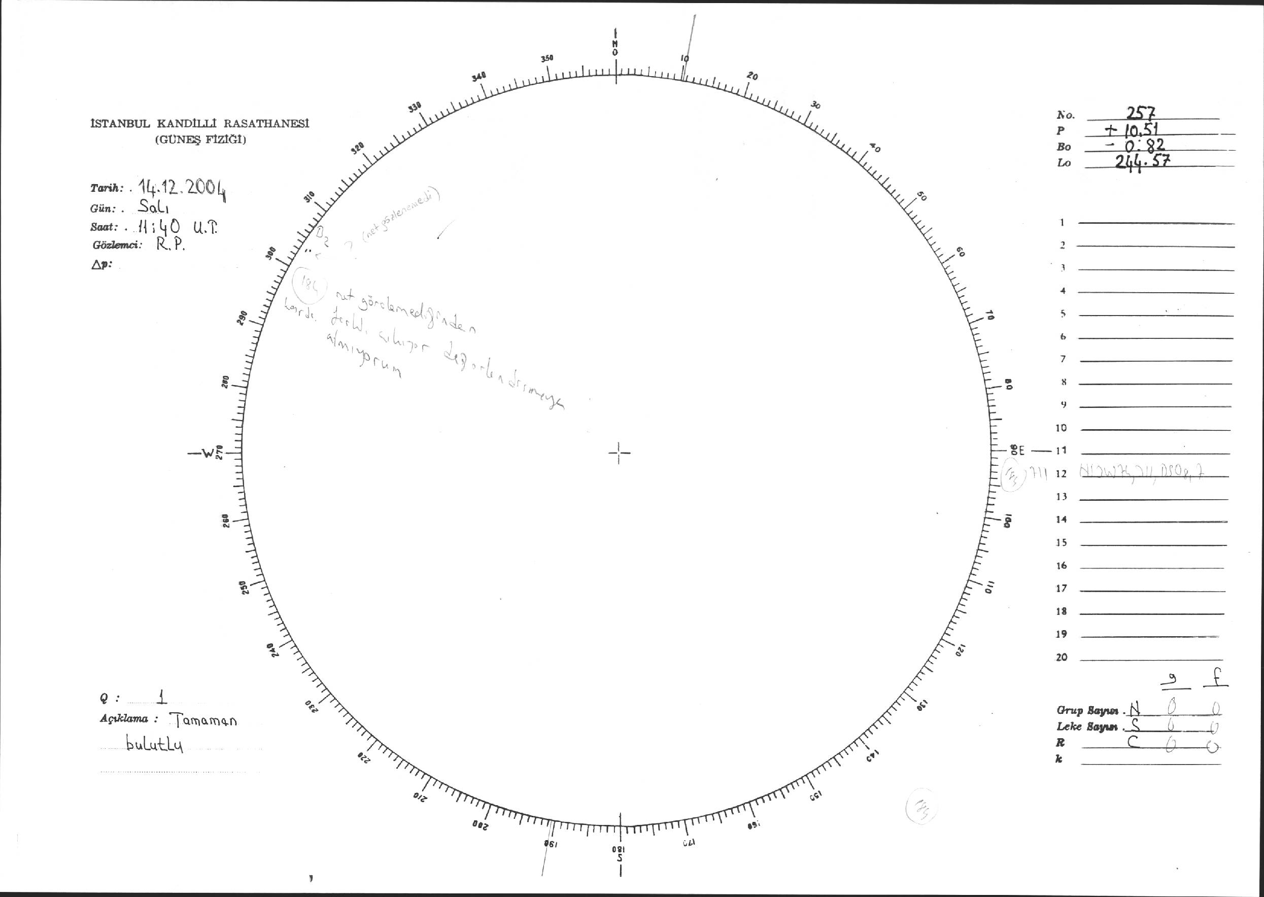 Güneş Lekesi Çizimi - 14.12.2004