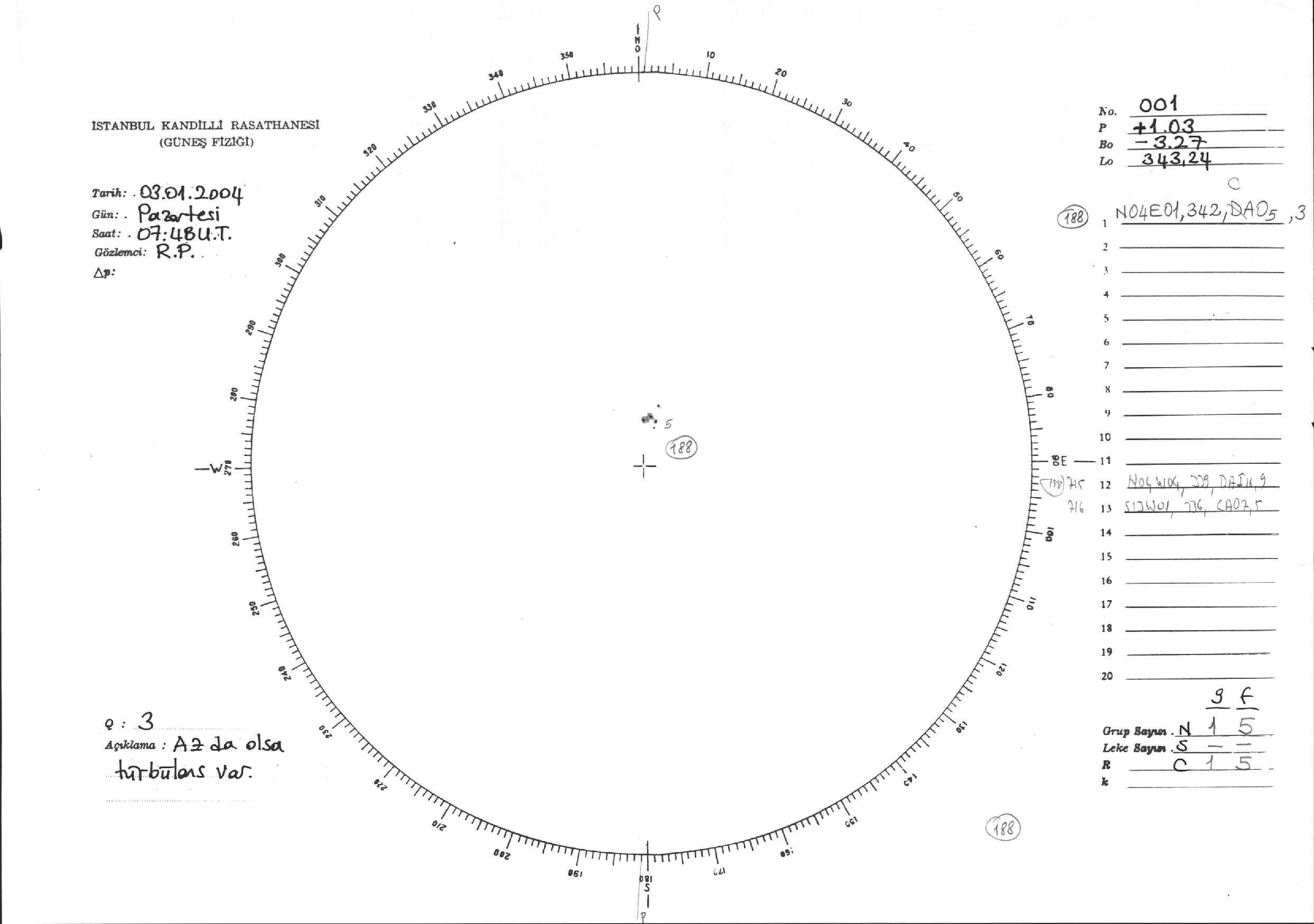 Güneş Lekesi Çizimi - 03.01.2005