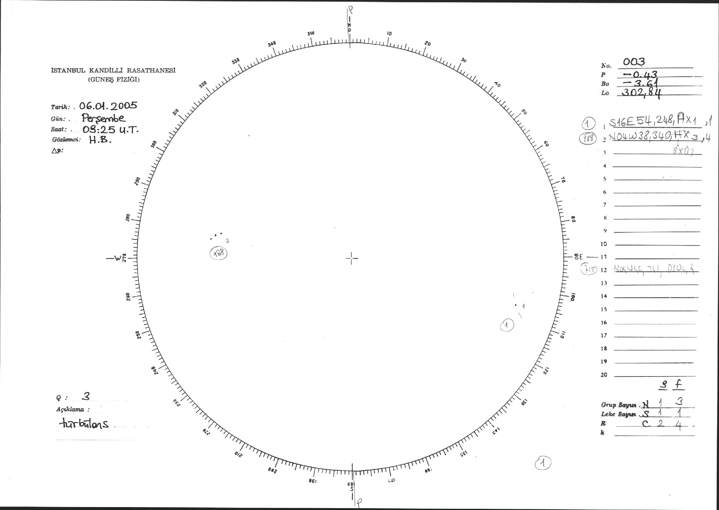 Güneş Lekesi Çizimi - 06.01.2005
