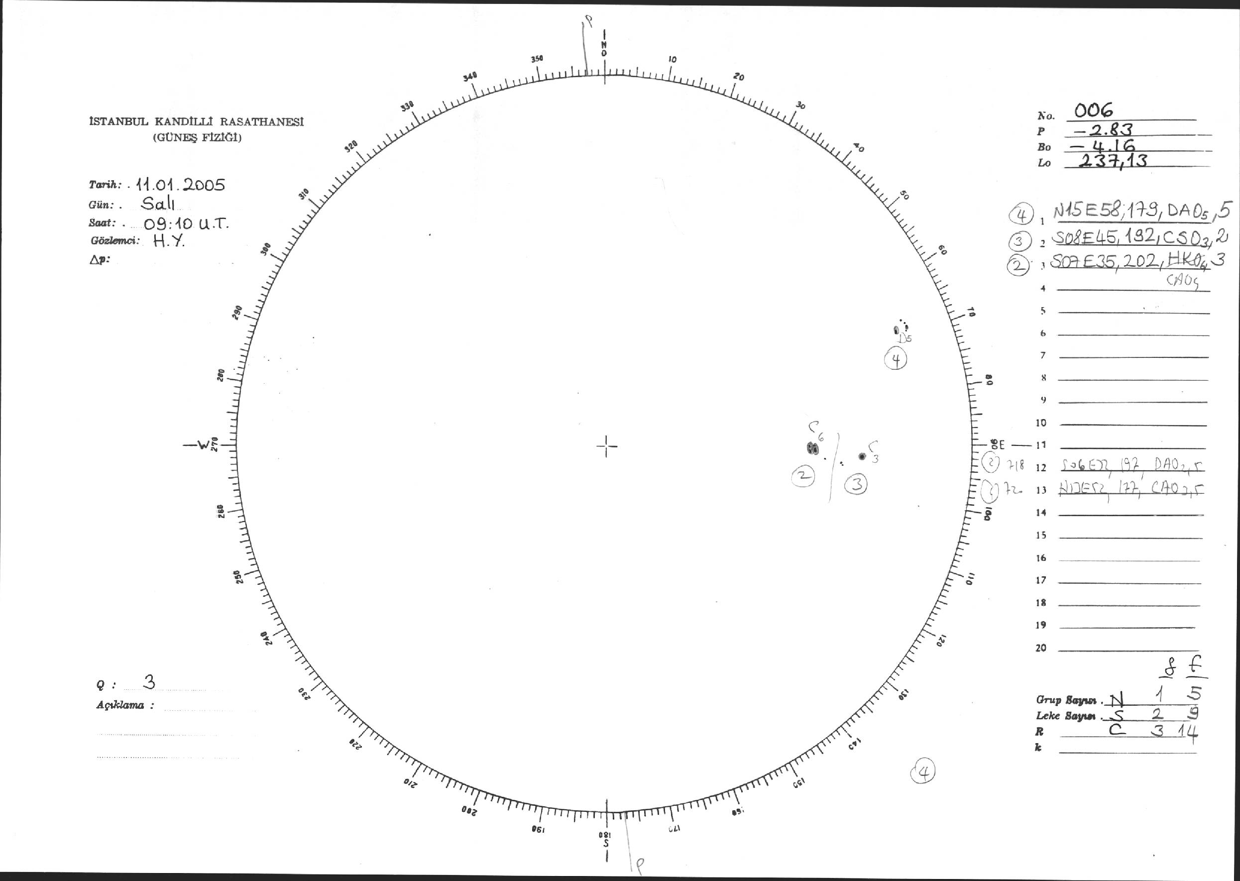 Güneş Lekesi Çizimi - 11.01.2005