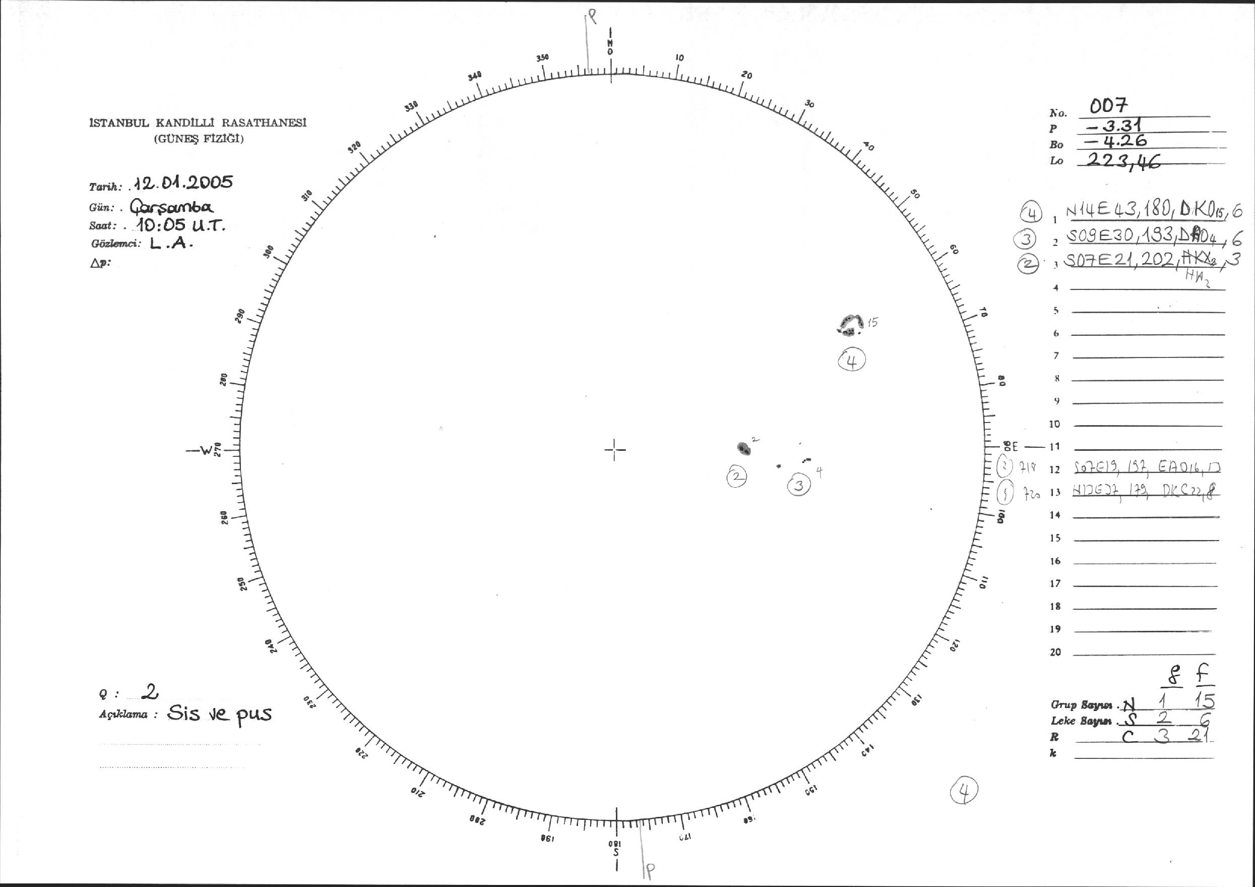 Güneş Lekesi Çizimi - 12.01.2005
