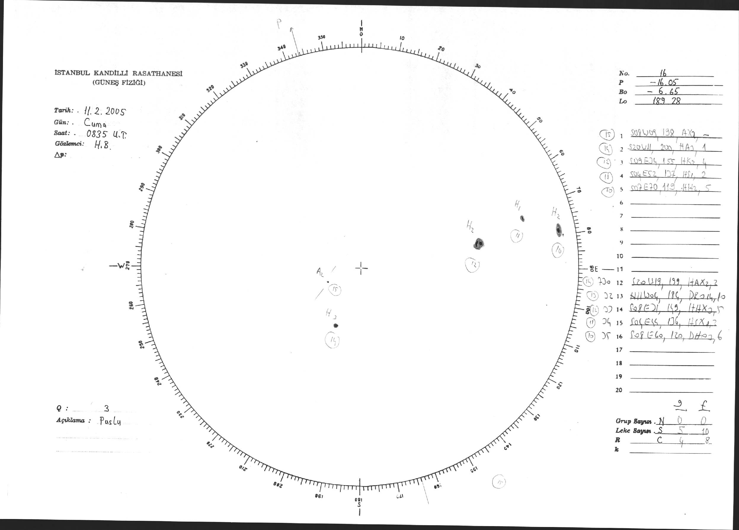 Güneş Lekesi Çizimi - 11.02.2005