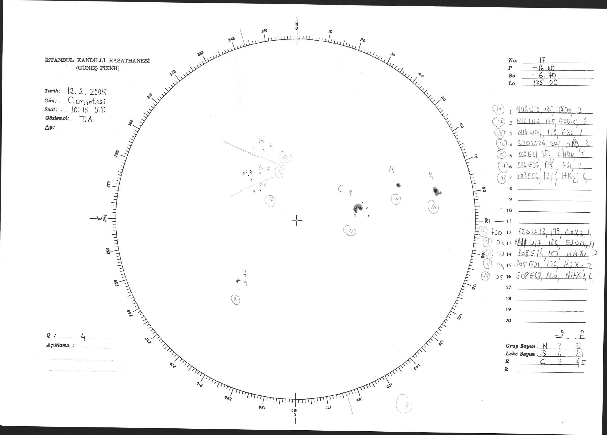 Güneş Lekesi Çizimi - 12.02.2005