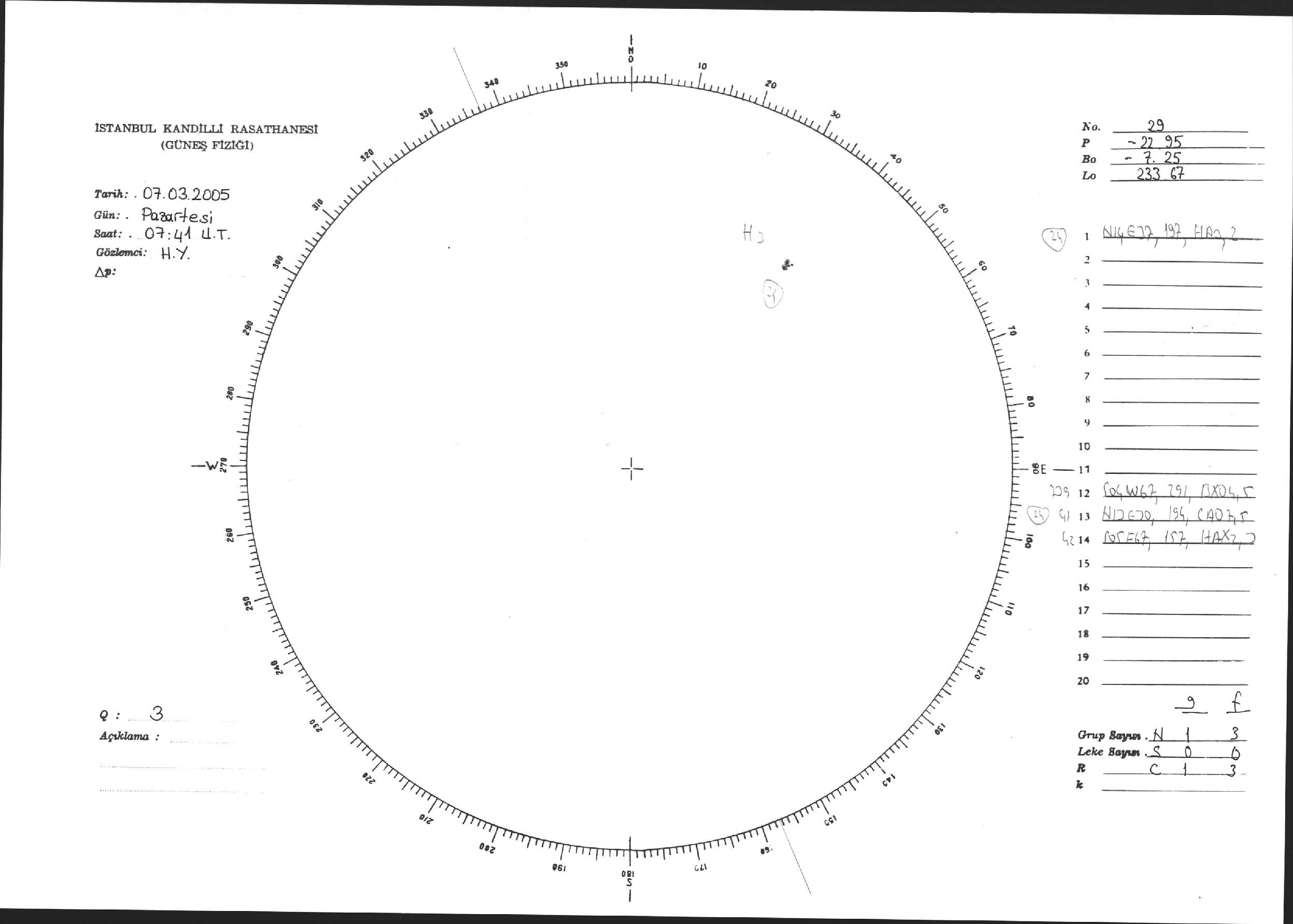 Güneş Lekesi Çizimi - 07.03.2005