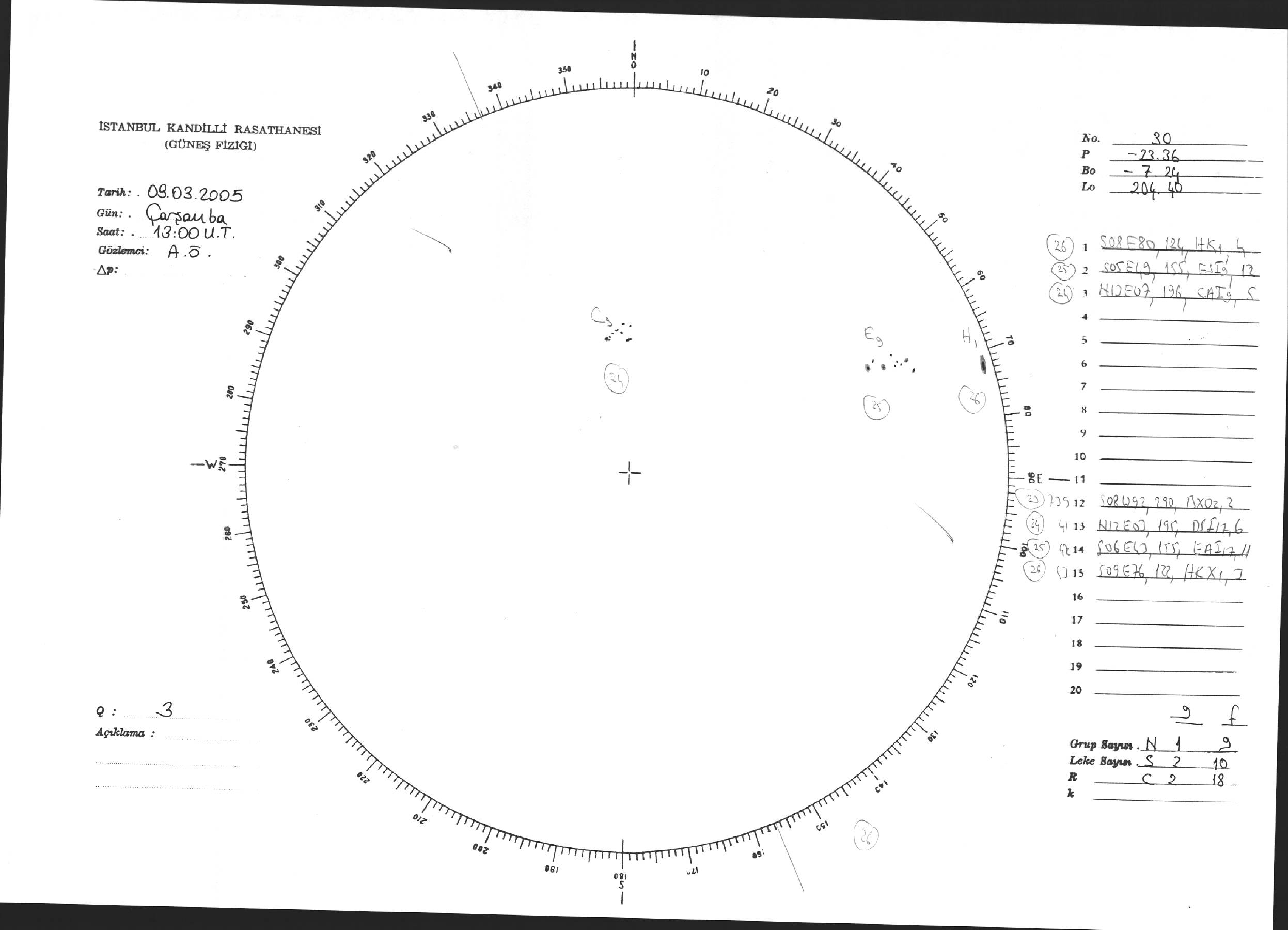 Güneş Lekesi Çizimi - 09.03.2005
