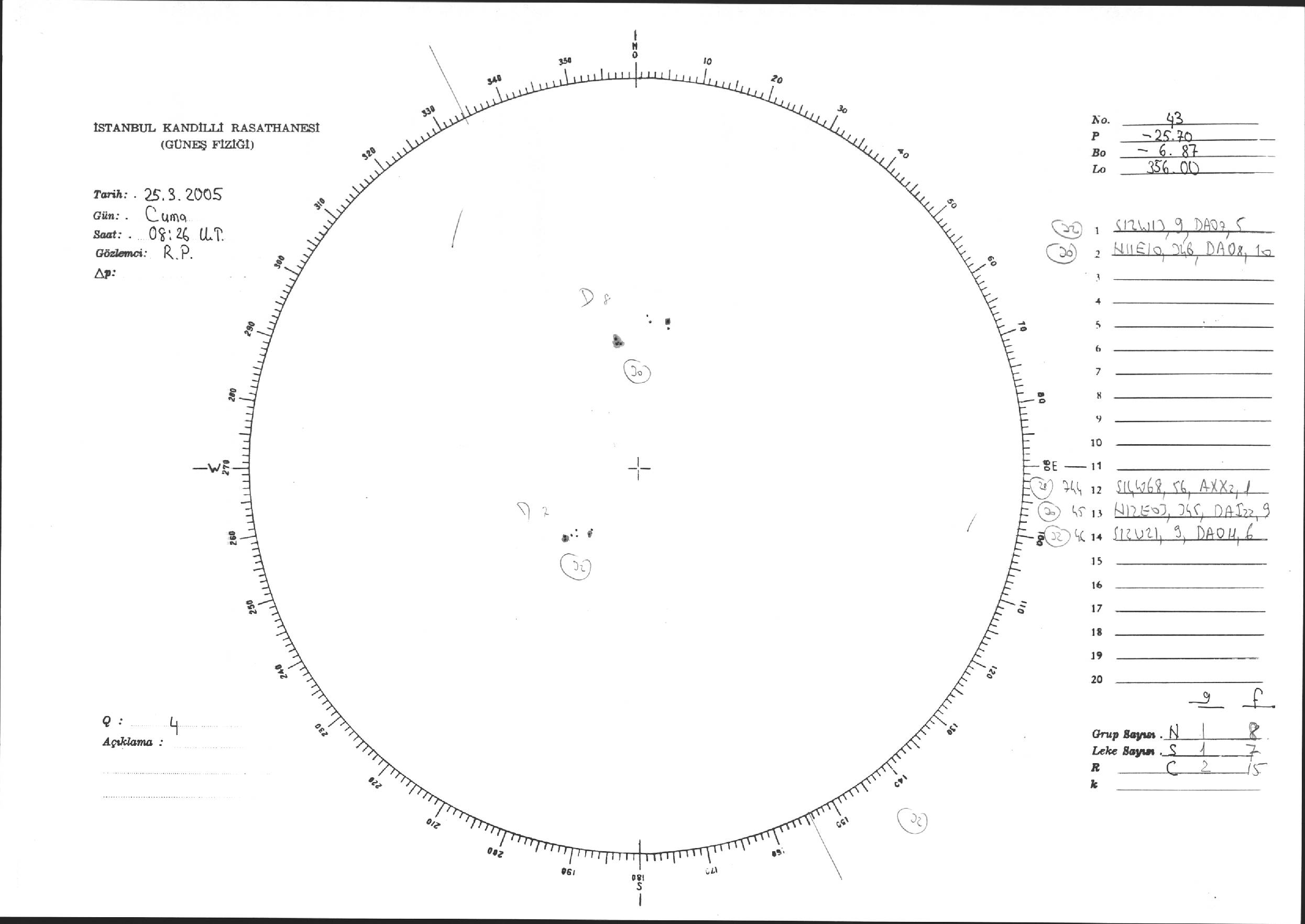 Güneş Lekesi Çizimi - 25.03.2005