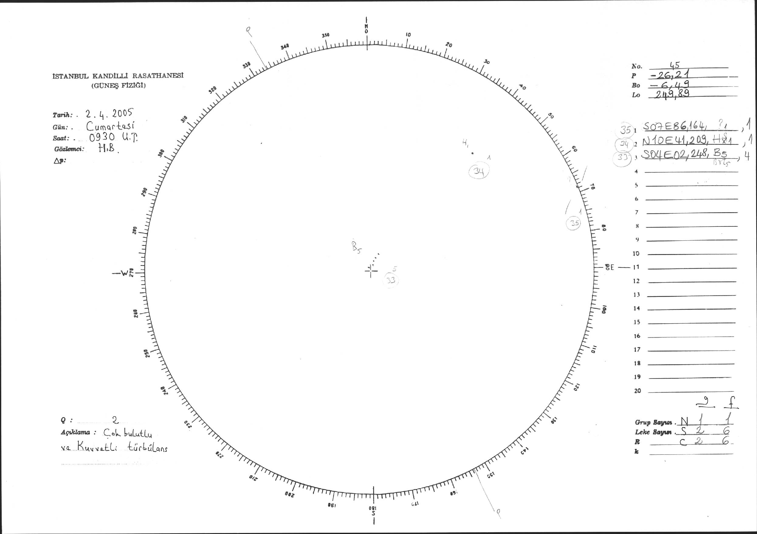 Güneş Lekesi Çizimi - 02.04.2005