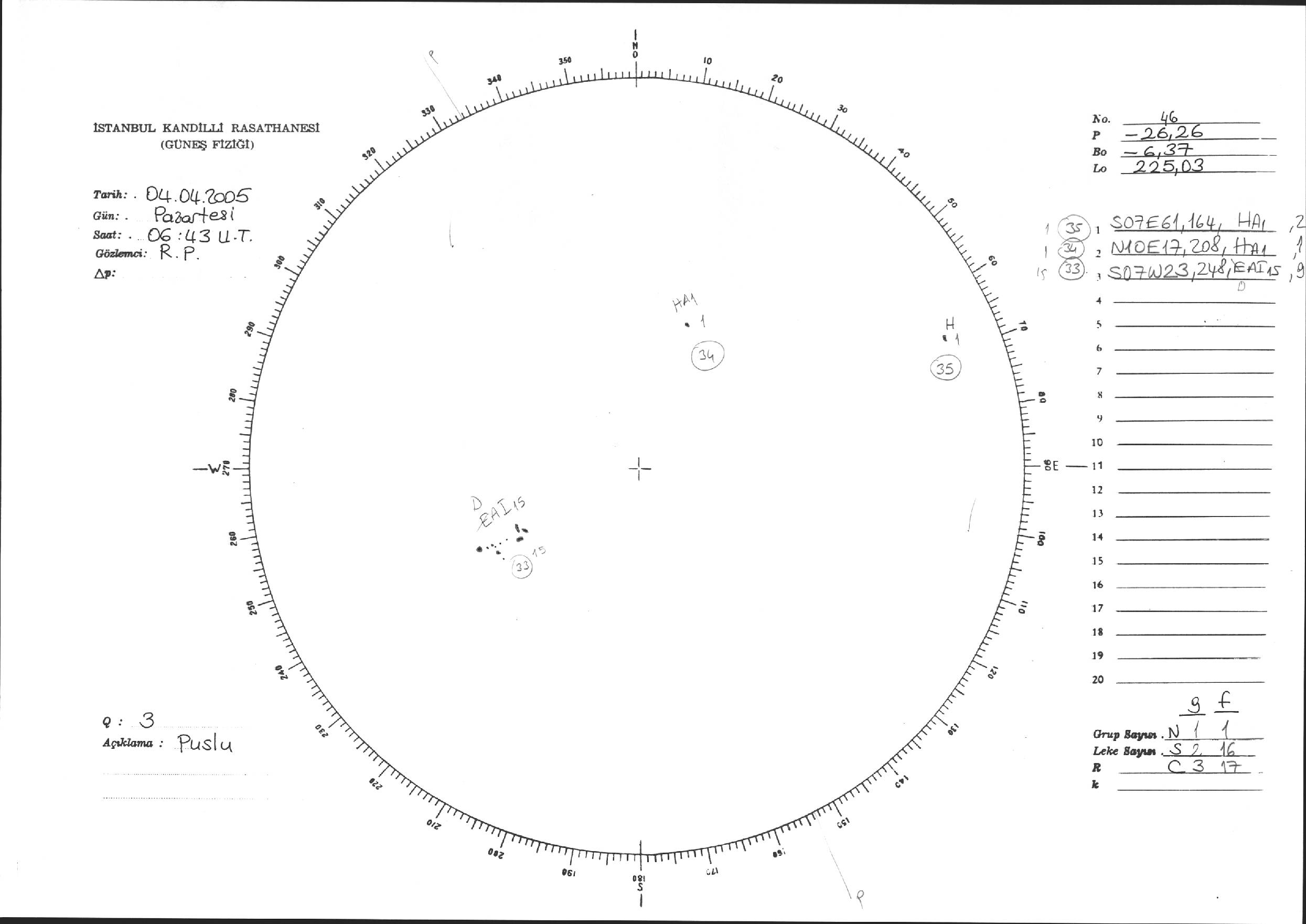Güneş Lekesi Çizimi - 04.04.2005