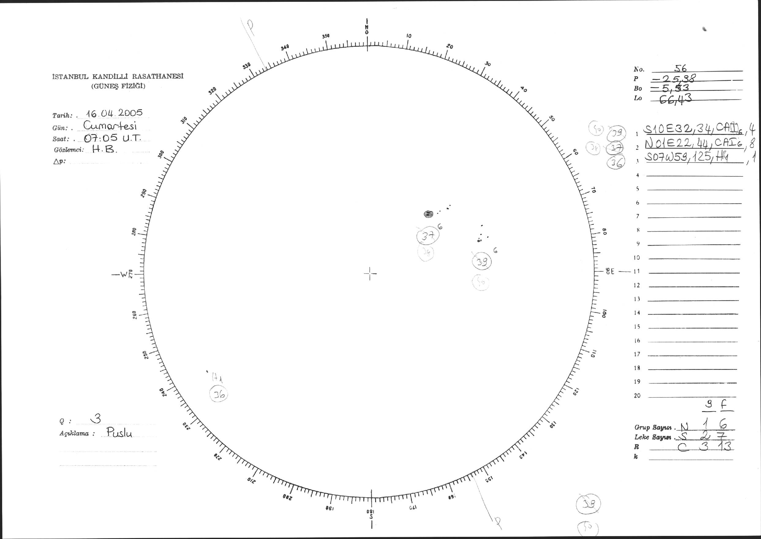 Güneş Lekesi Çizimi - 16.04.2005