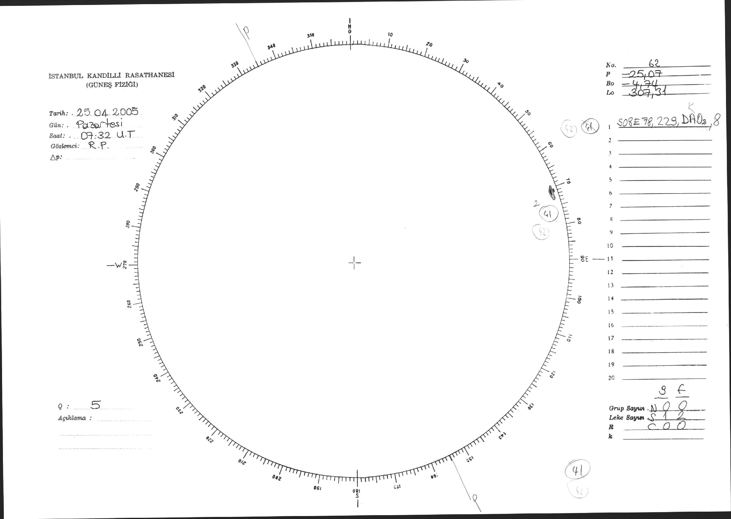 Güneş Lekesi Çizimi - 25.04.2005