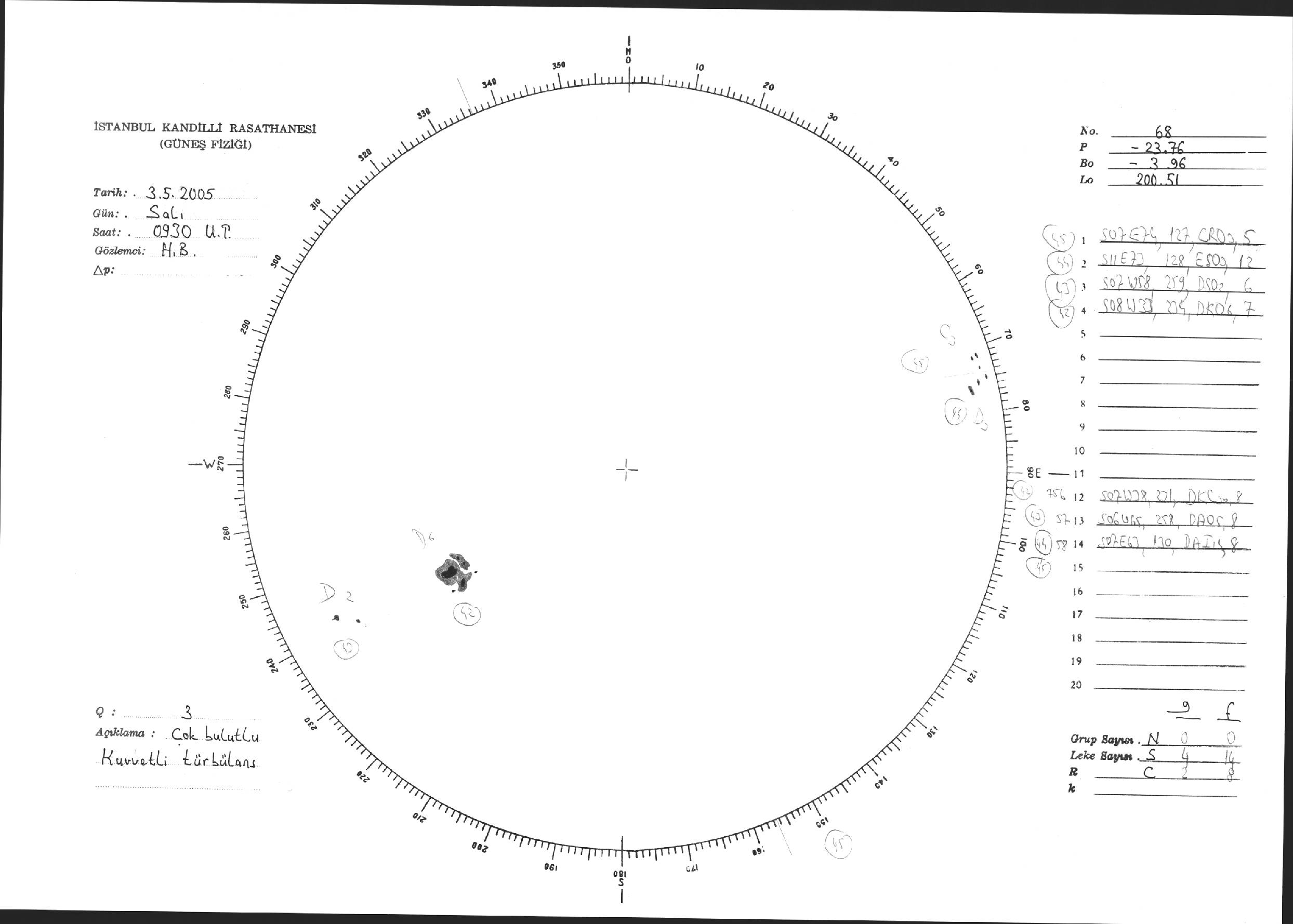 Güneş Lekesi Çizimi - 03.05.2005