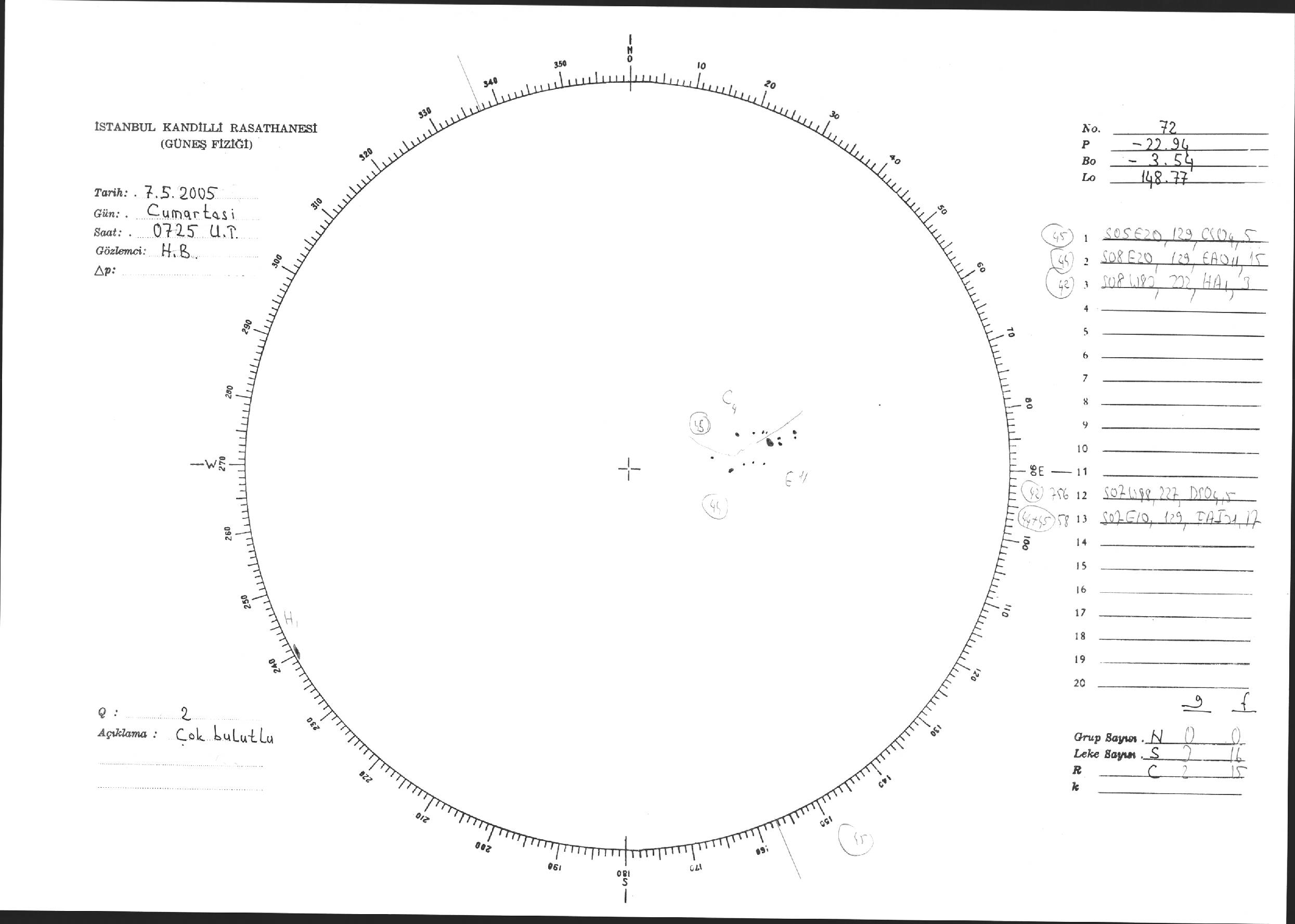 Güneş Lekesi Çizimi - 07.05.2005