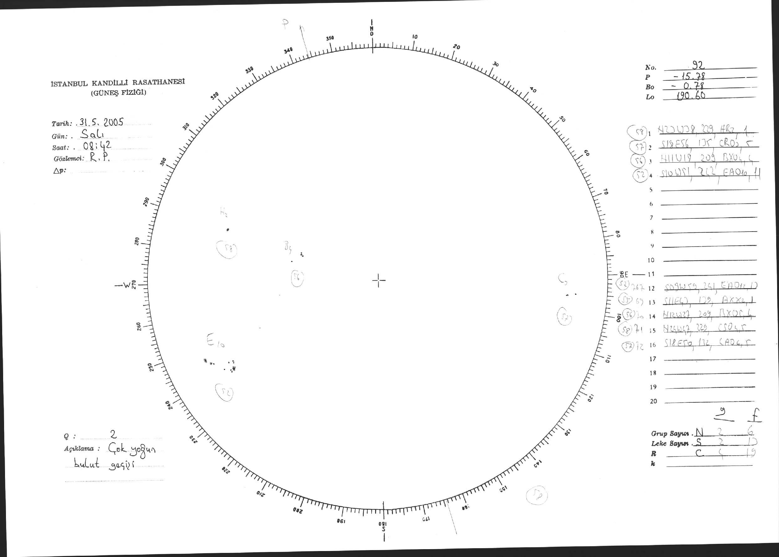 Güneş Lekesi Çizimi - 31.05.2005