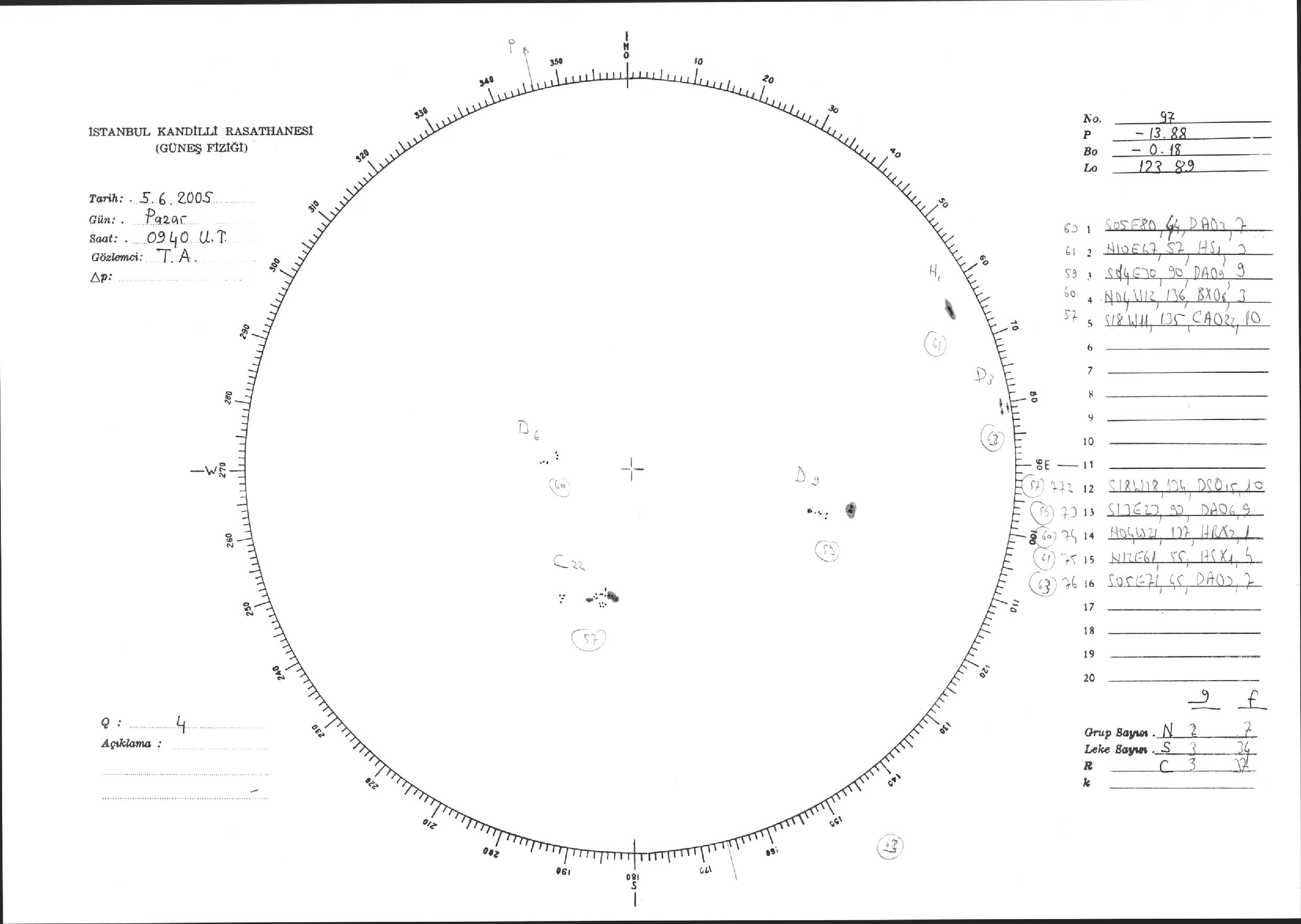 Güneş Lekesi Çizimi - 05.06.2005