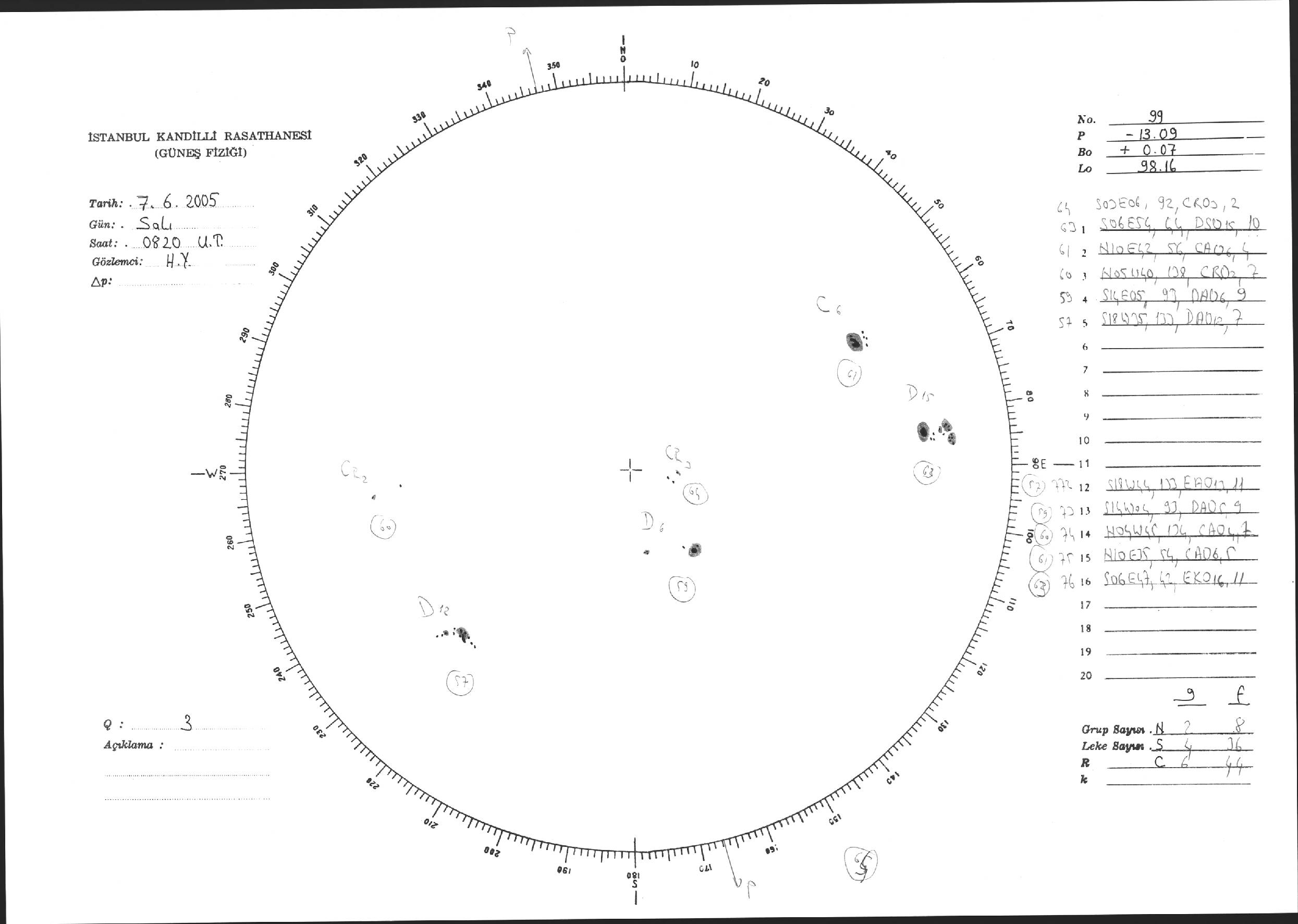 Güneş Lekesi Çizimi - 07.06.2005