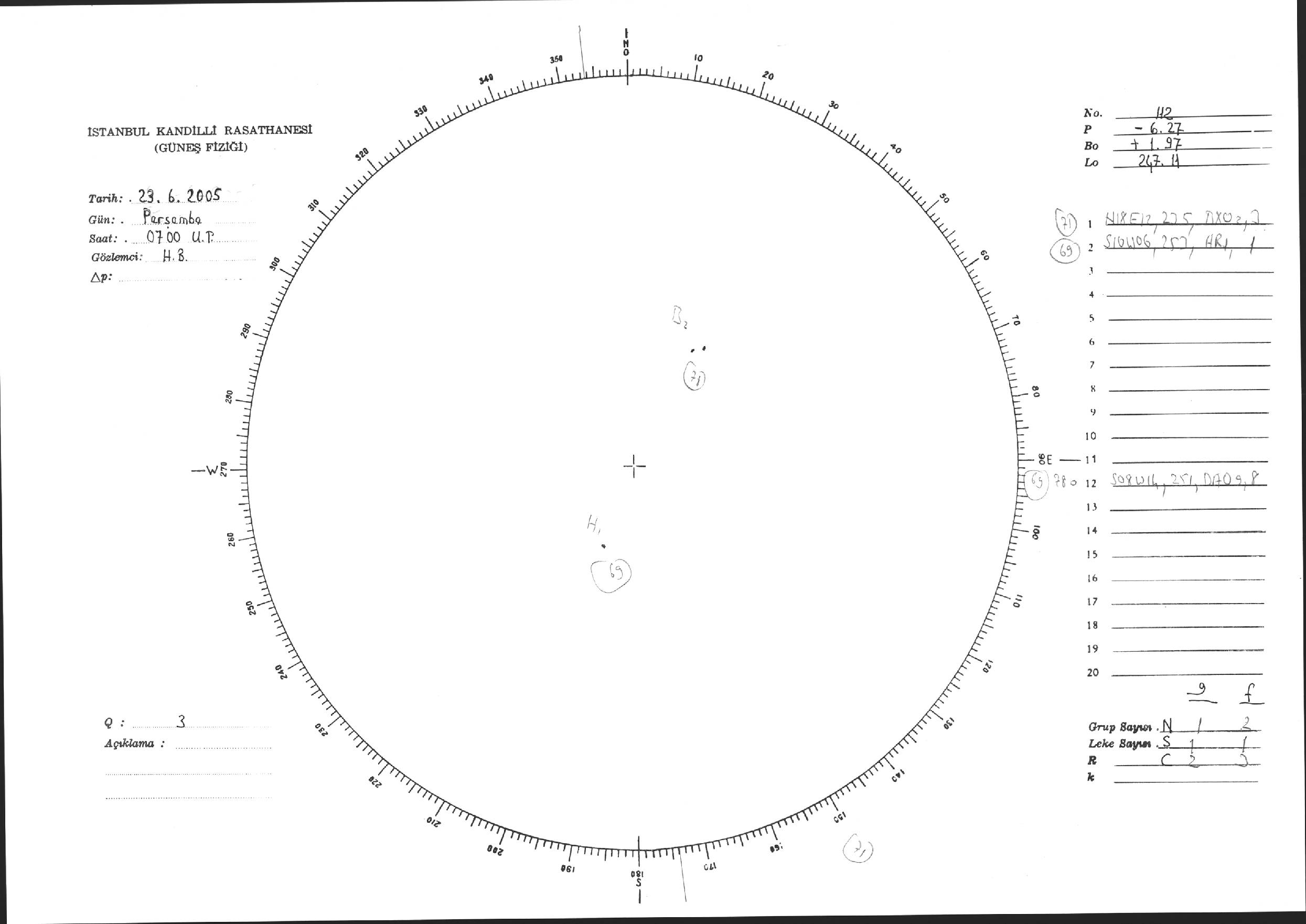 Güneş Lekesi Çizimi - 23.06.2005
