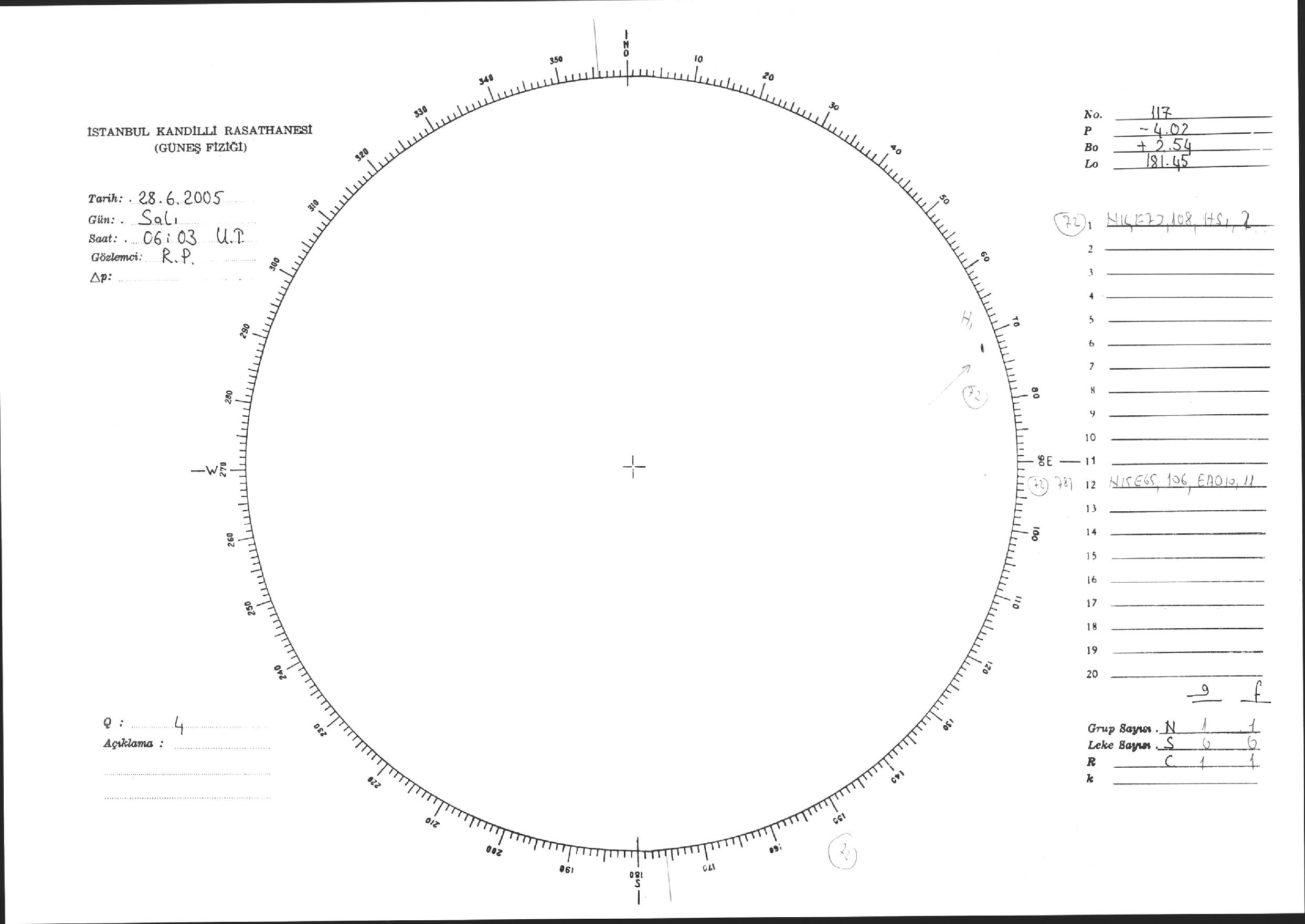 Güneş Lekesi Çizimi - 28.06.2005
