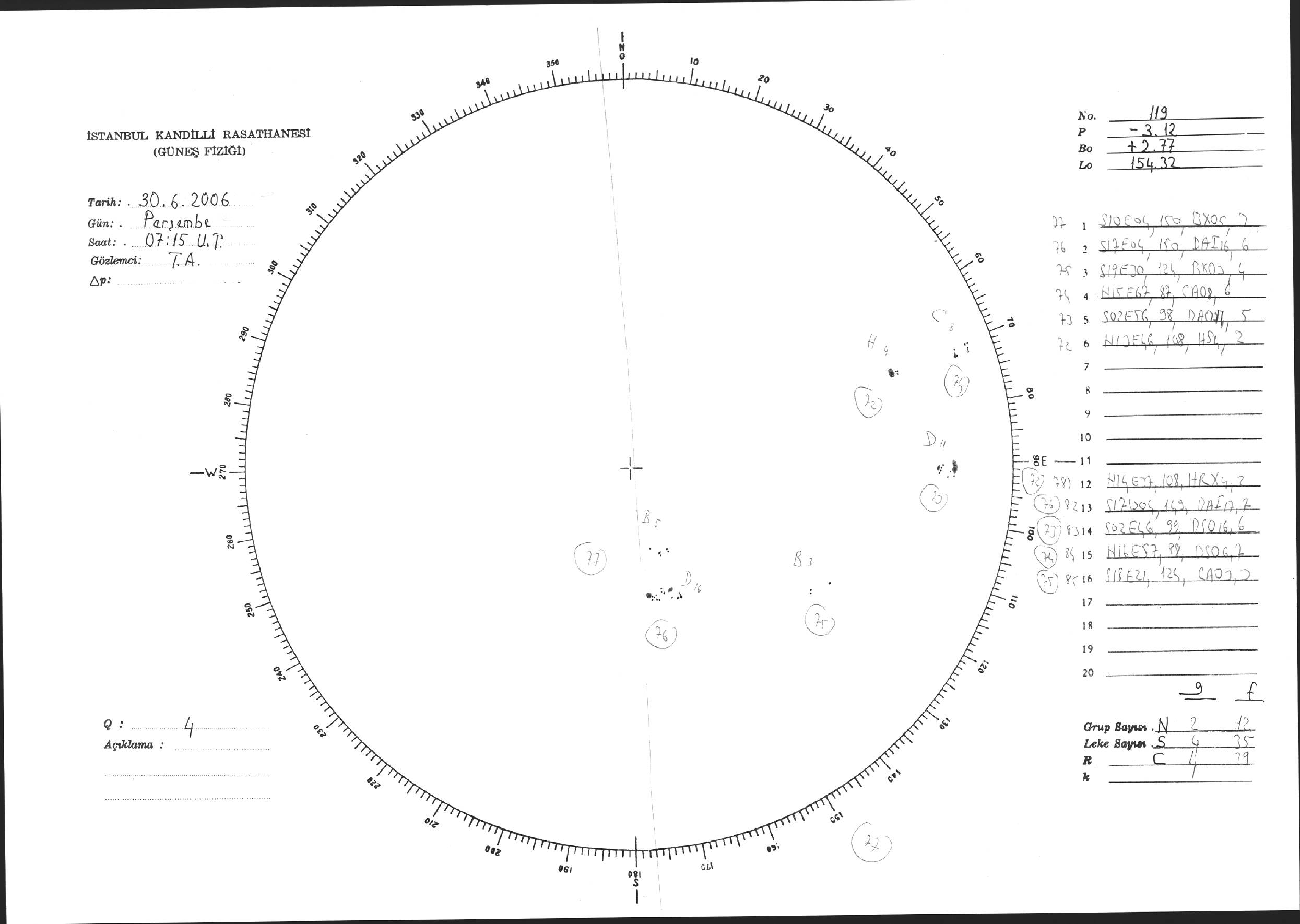 Güneş Lekesi Çizimi - 30.06.2005