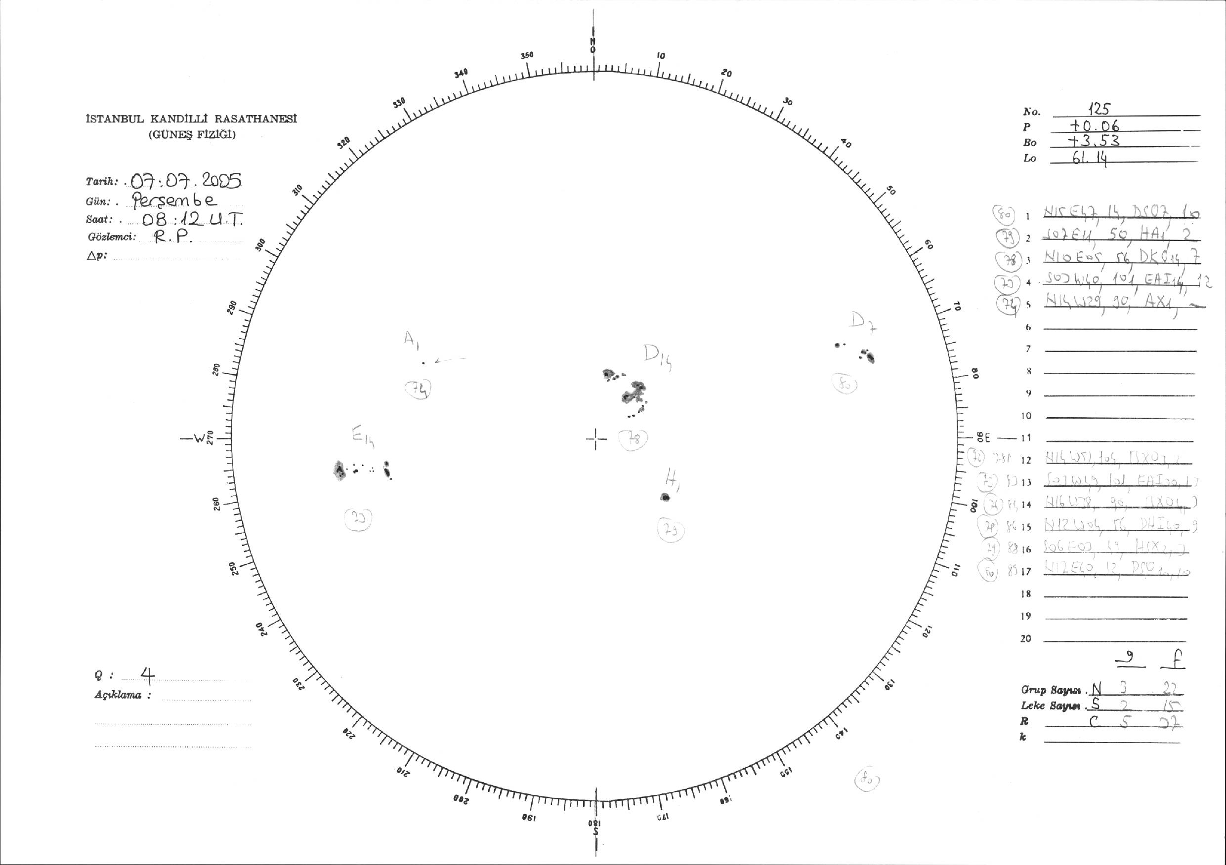 Güneş Lekesi Çizimi - 07.07.2005