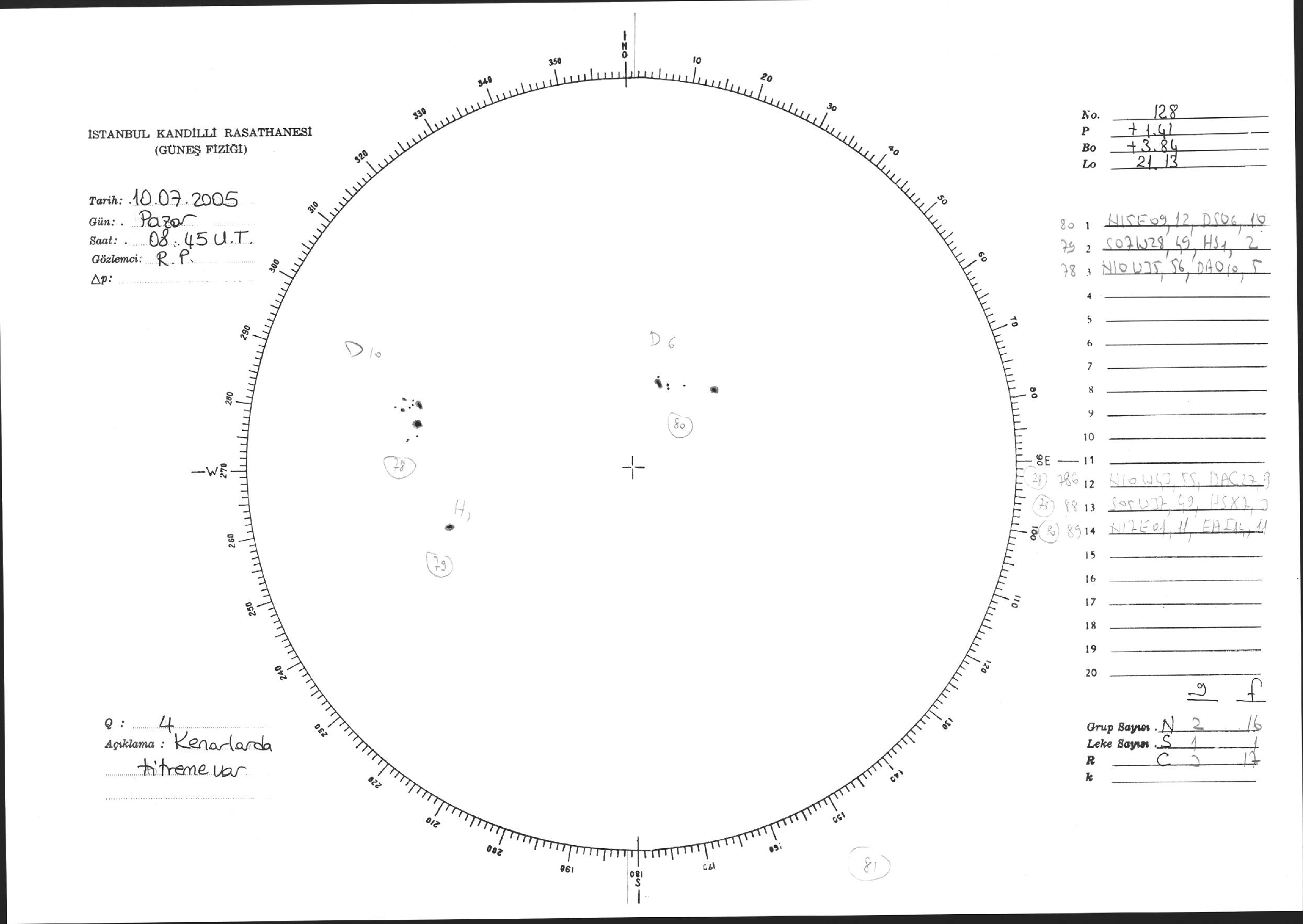Güneş Lekesi Çizimi - 10.07.2005