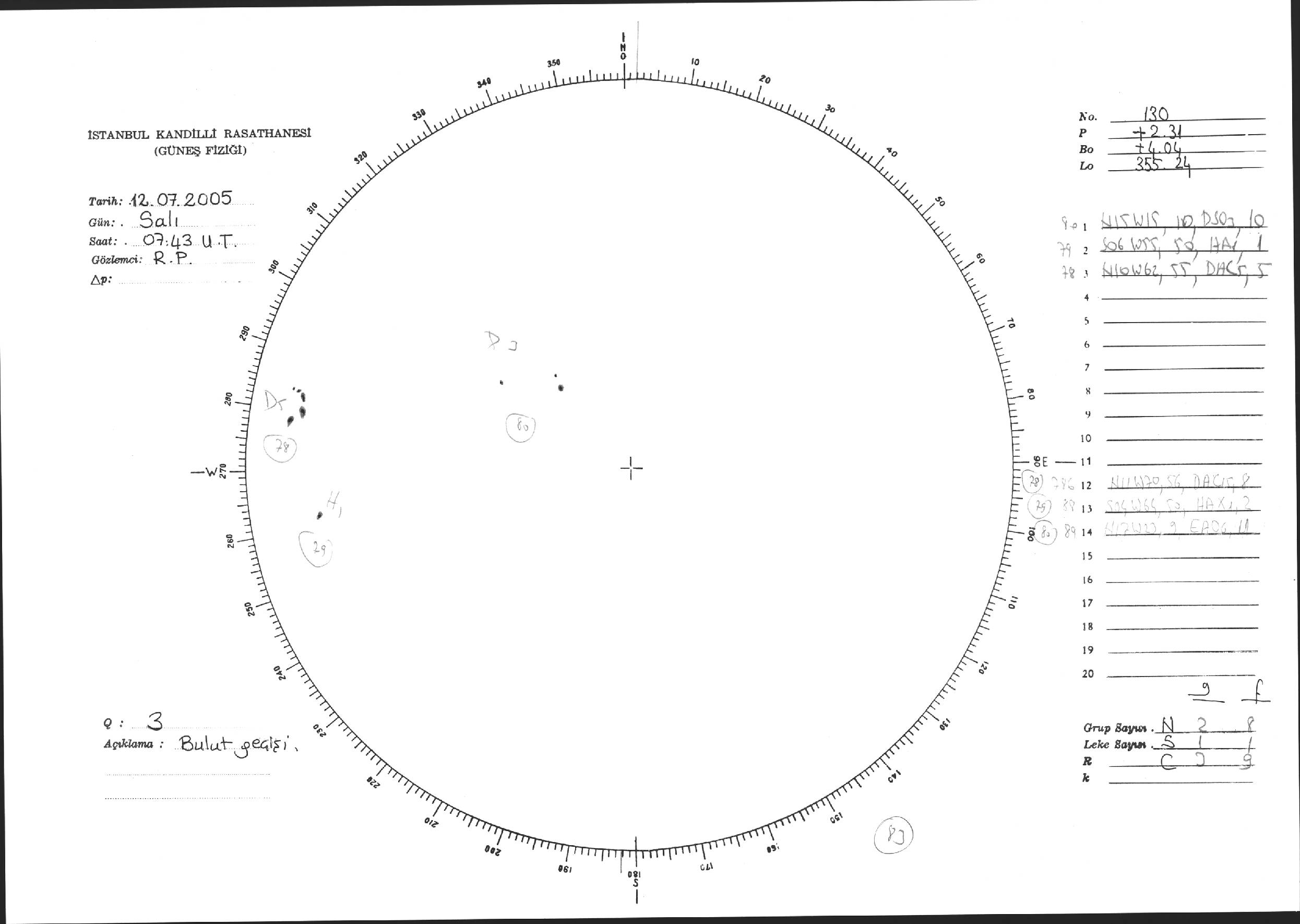 Güneş Lekesi Çizimi - 12.07.2005