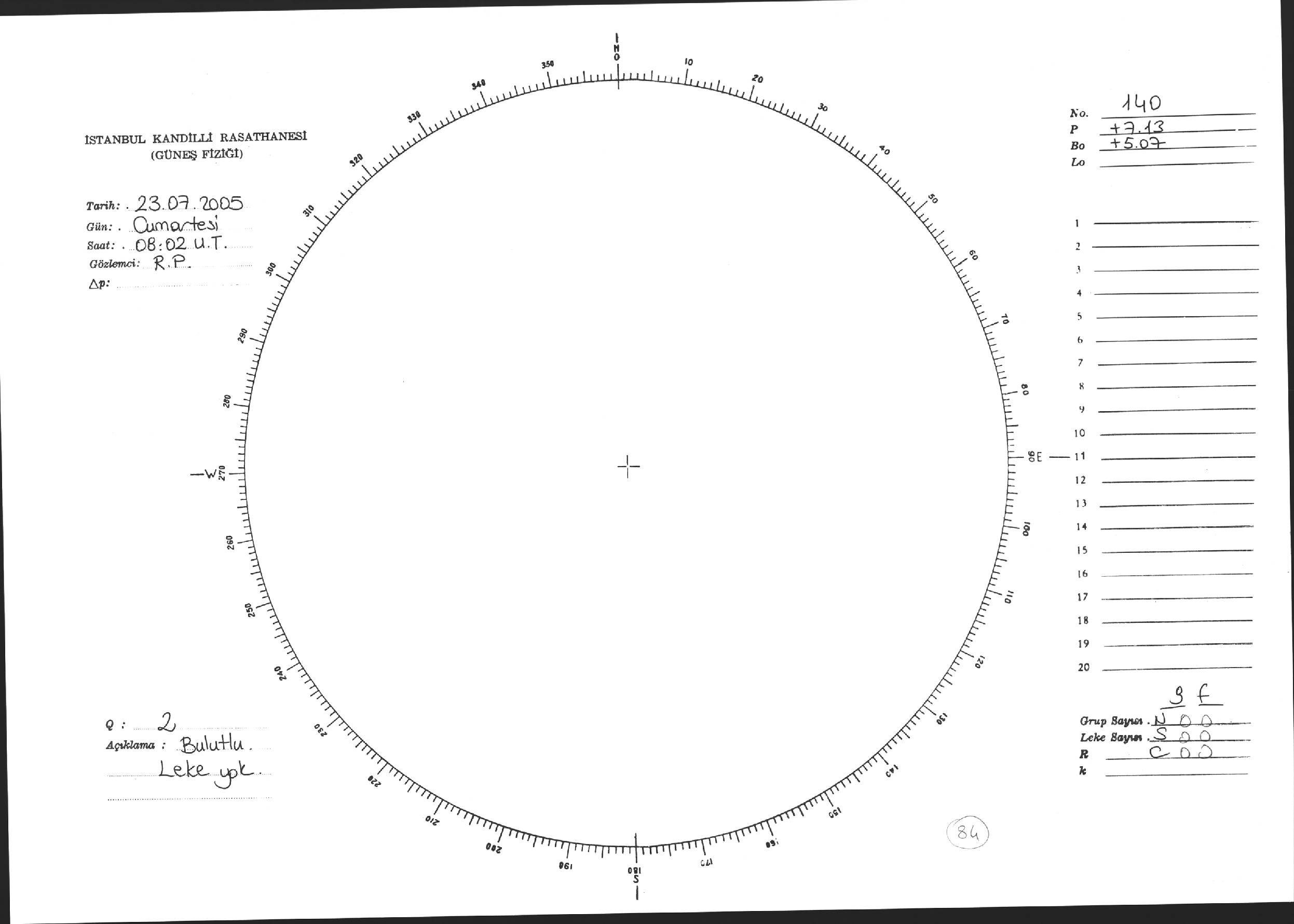Güneş Lekesi Çizimi - 23.07.2005