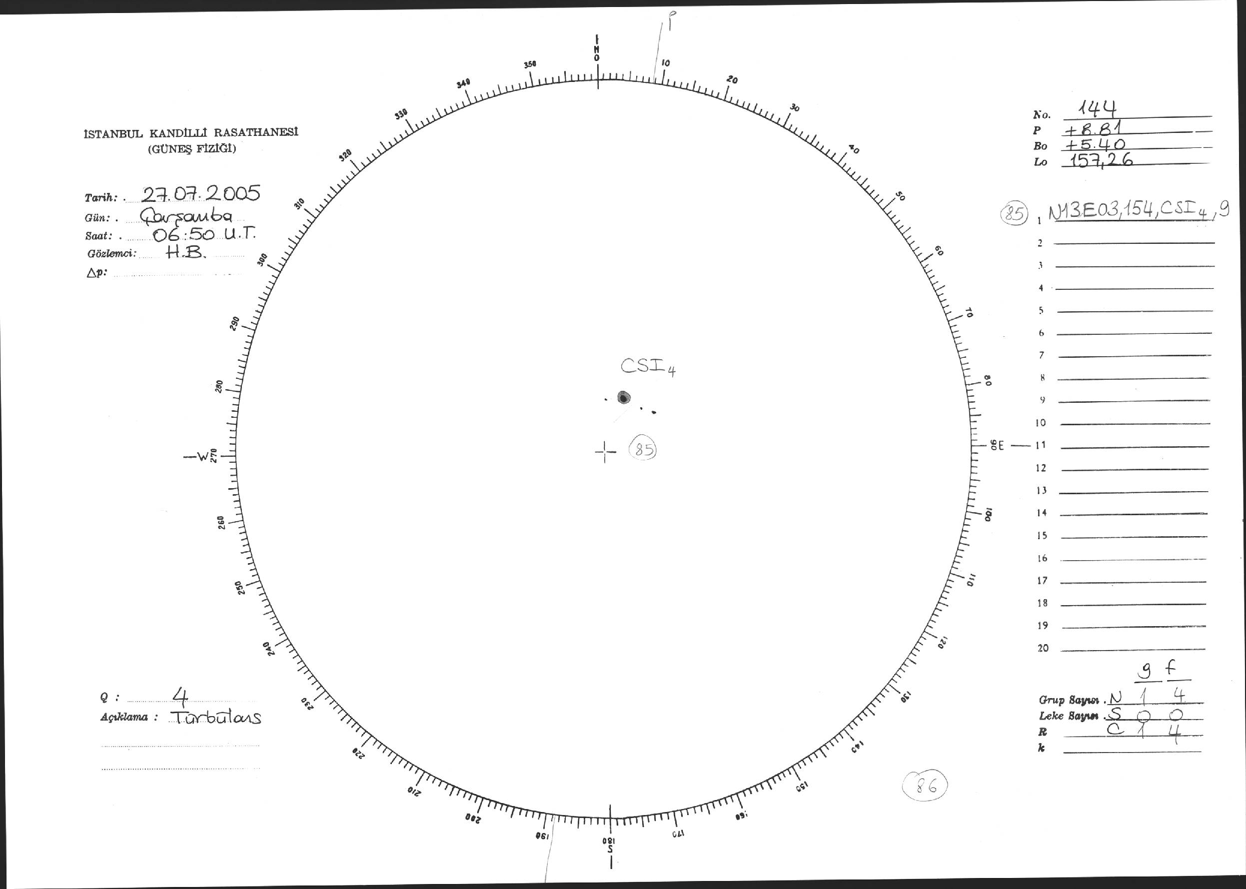 Güneş Lekesi Çizimi - 27.07.2005