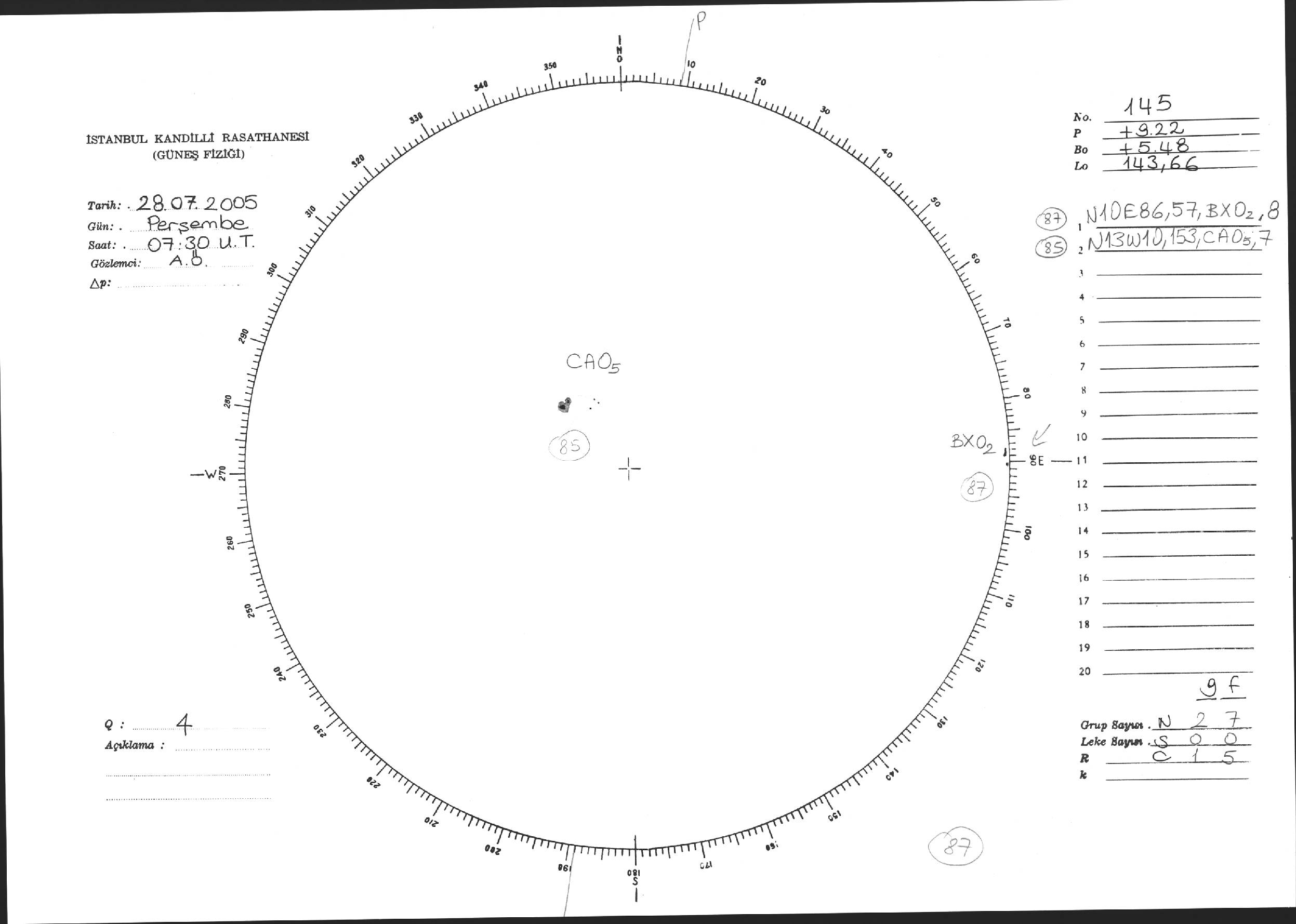 Güneş Lekesi Çizimi - 28.07.2005