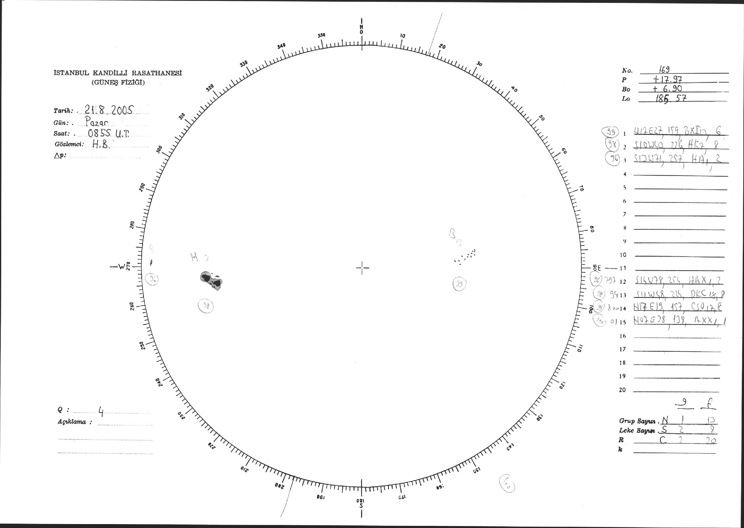 Güneş Lekesi Çizimi - 21.08.2005