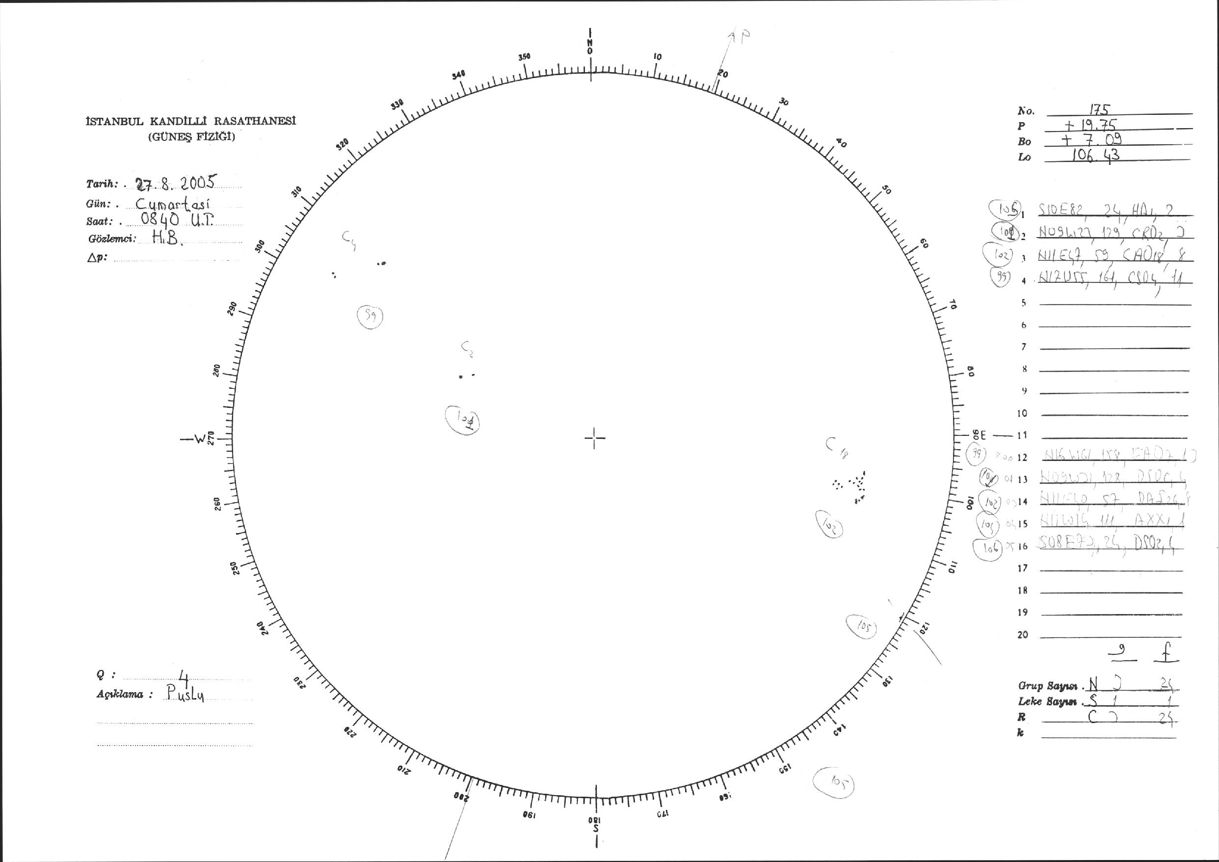 Güneş Lekesi Çizimi - 27.08.2005