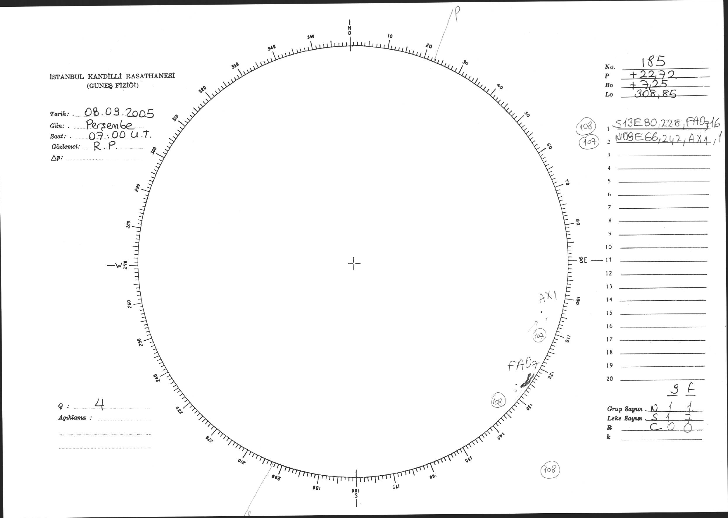 Güneş Lekesi Çizimi - 08.09.2005