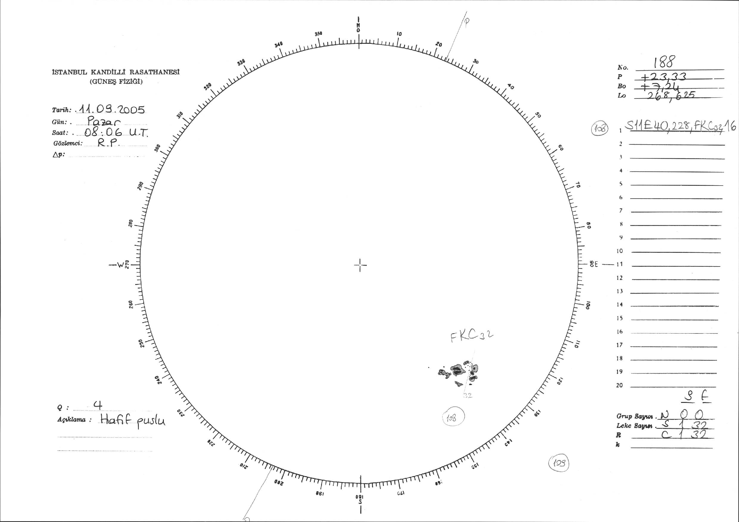 Güneş Lekesi Çizimi - 11.09.2005