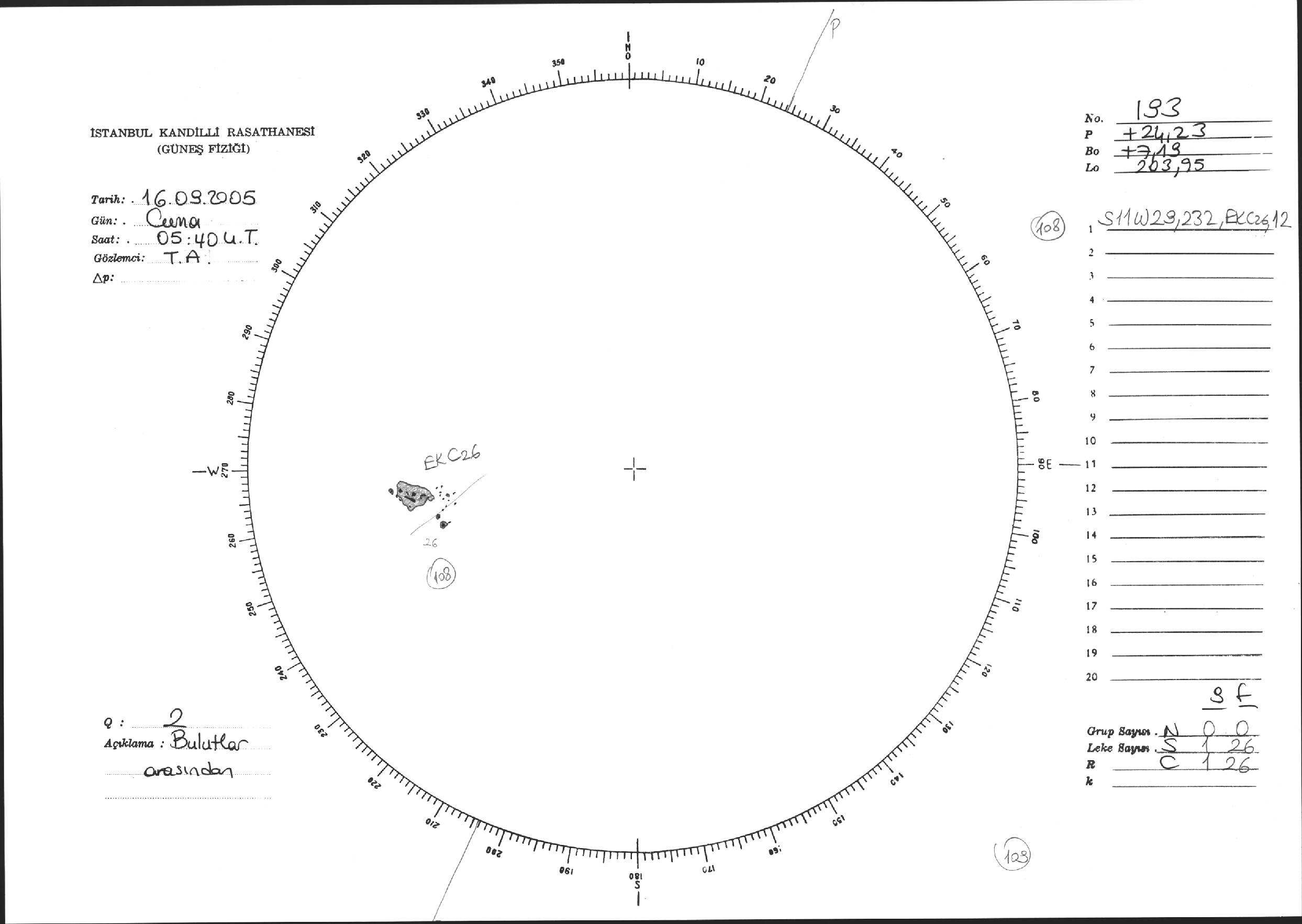 Güneş Lekesi Çizimi - 16.09.2005