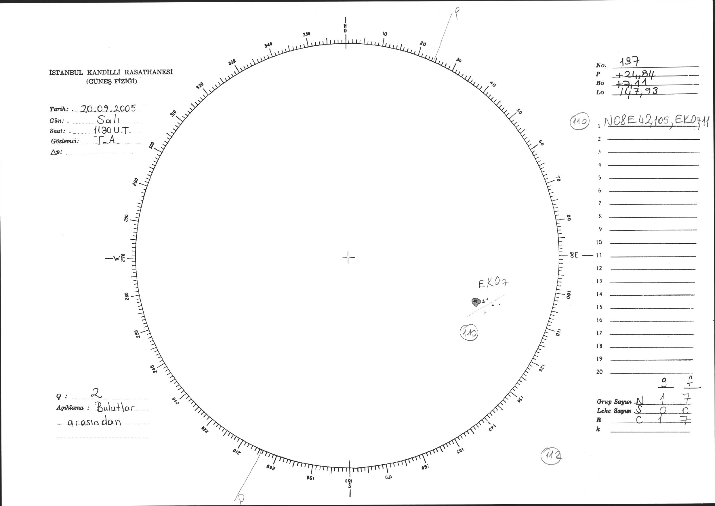 Güneş Lekesi Çizimi - 20.09.2005