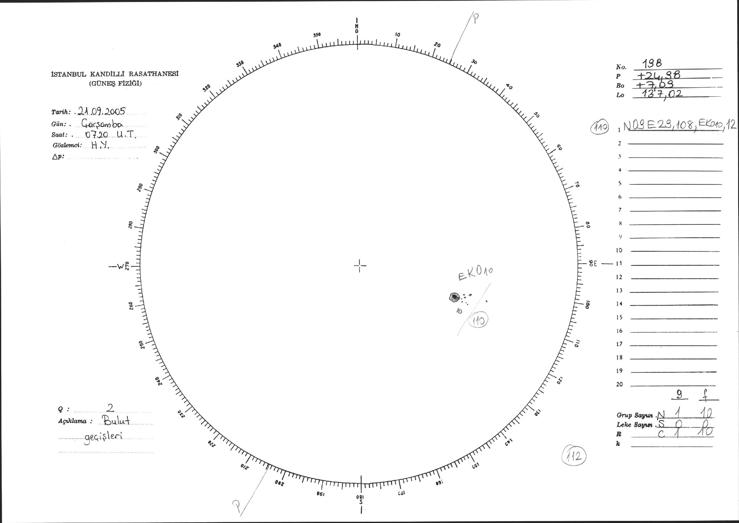 Güneş Lekesi Çizimi - 21.09.2005