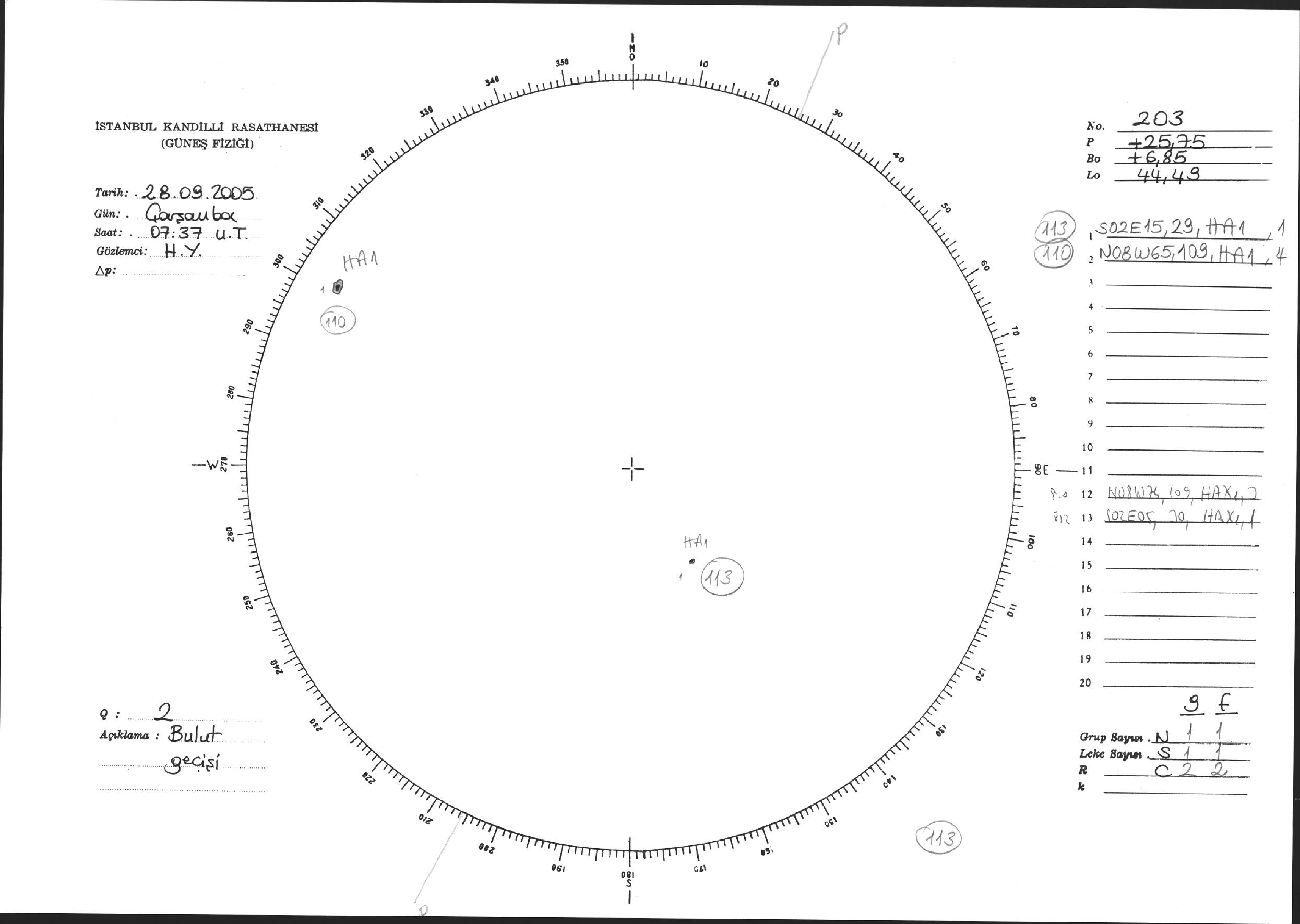 Güneş Lekesi Çizimi - 28.09.2005