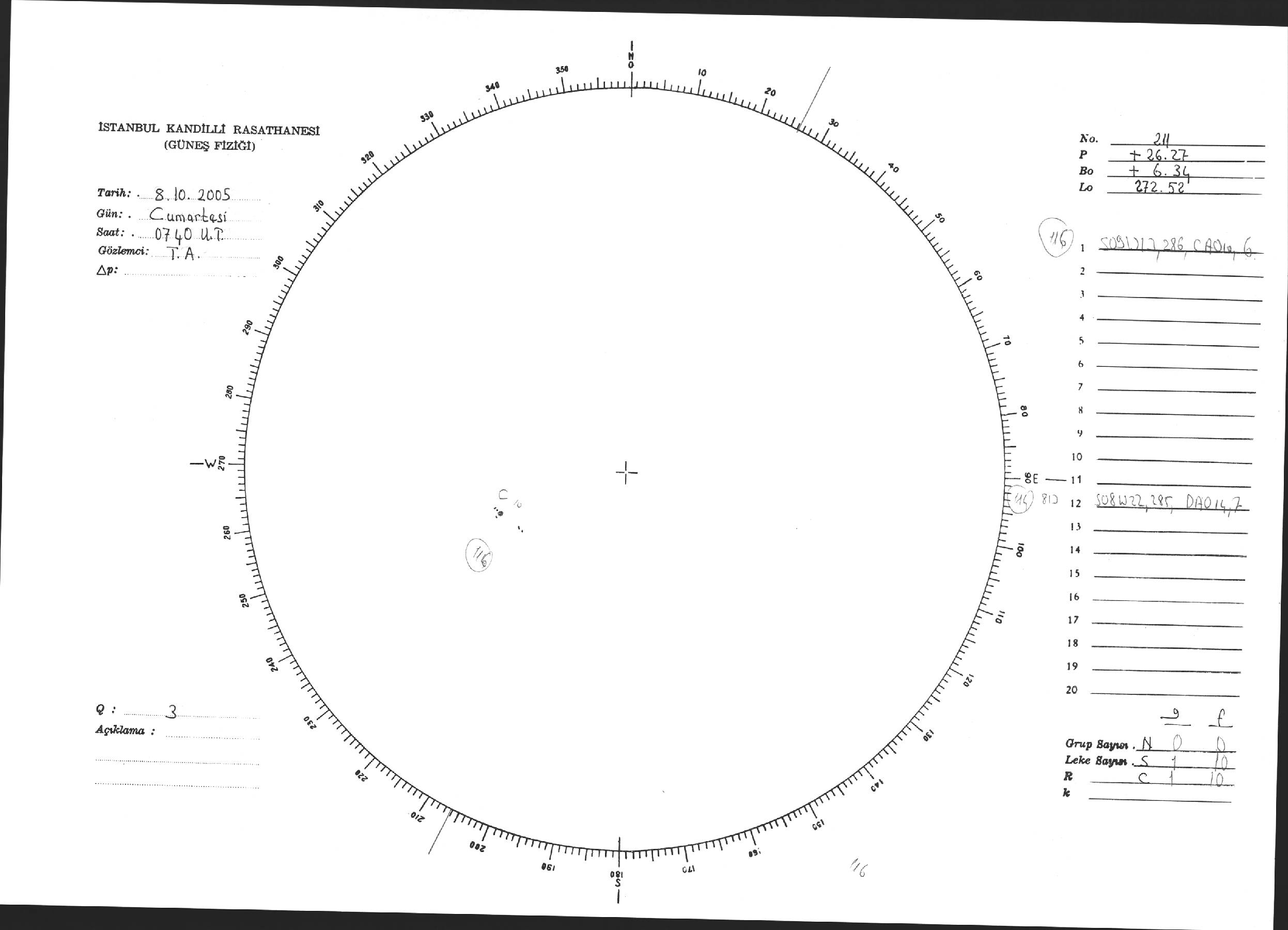 Güneş Lekesi Çizimi - 08.10.2005