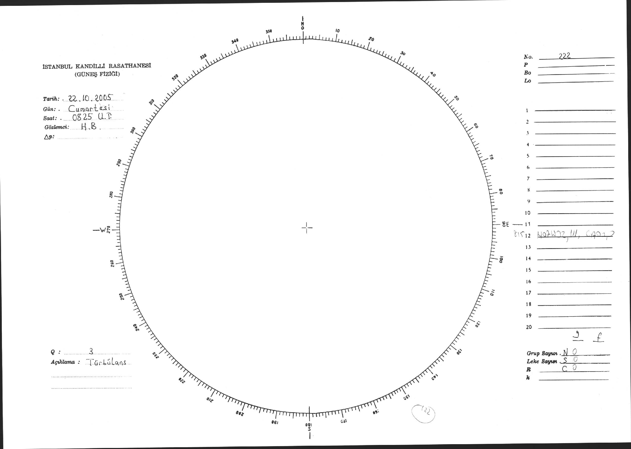 Güneş Lekesi Çizimi - 22.10.2005