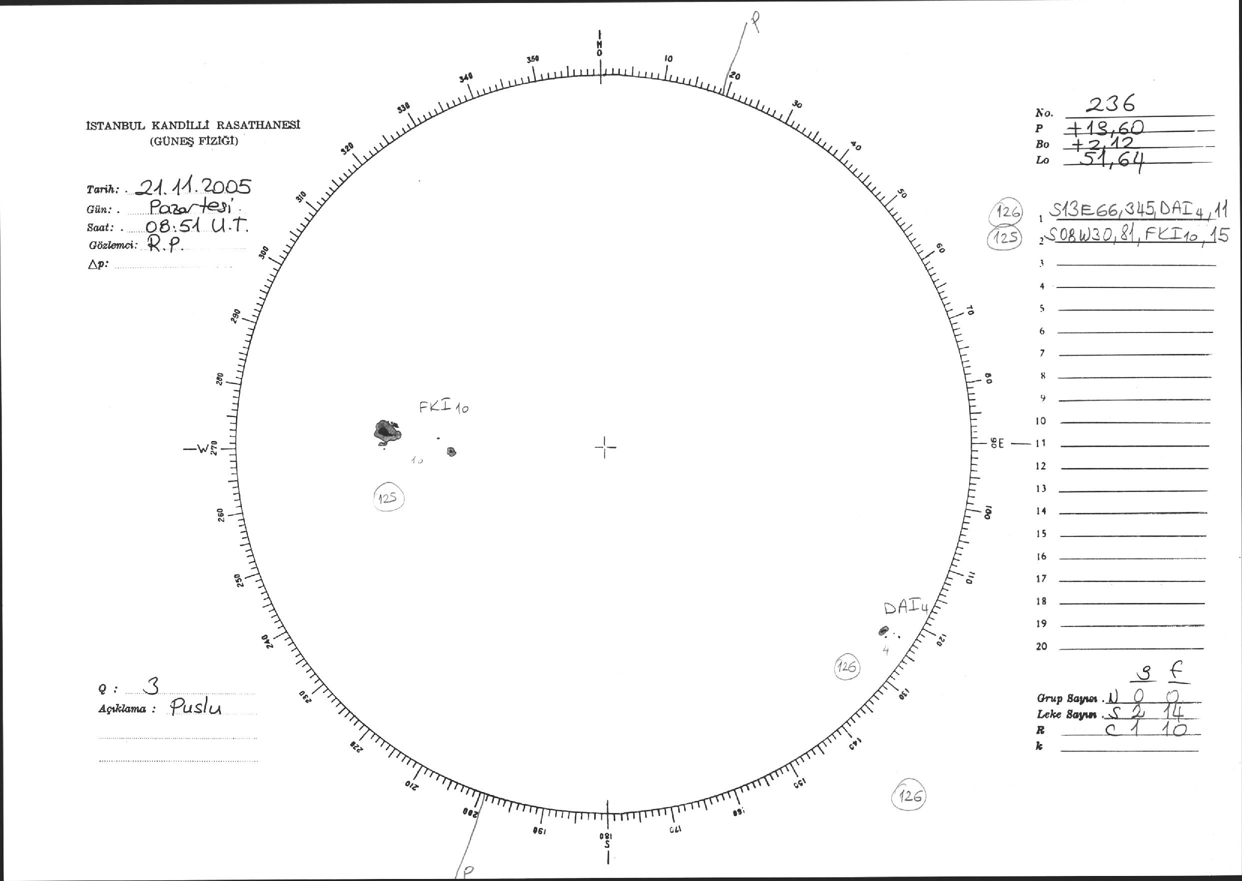 Güneş Lekesi Çizimi - 21.11.2005
