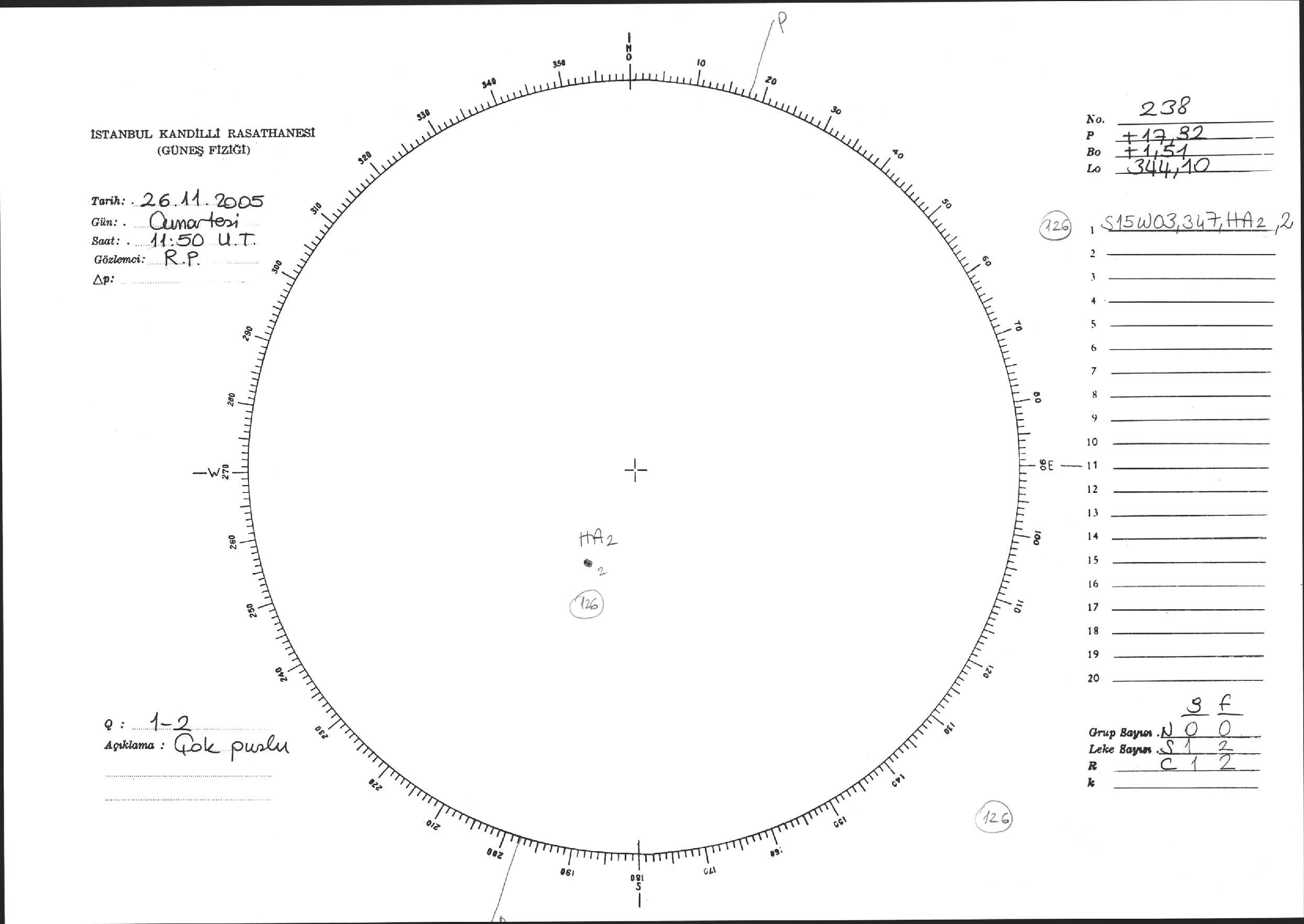 Güneş Lekesi Çizimi - 26.11.2005