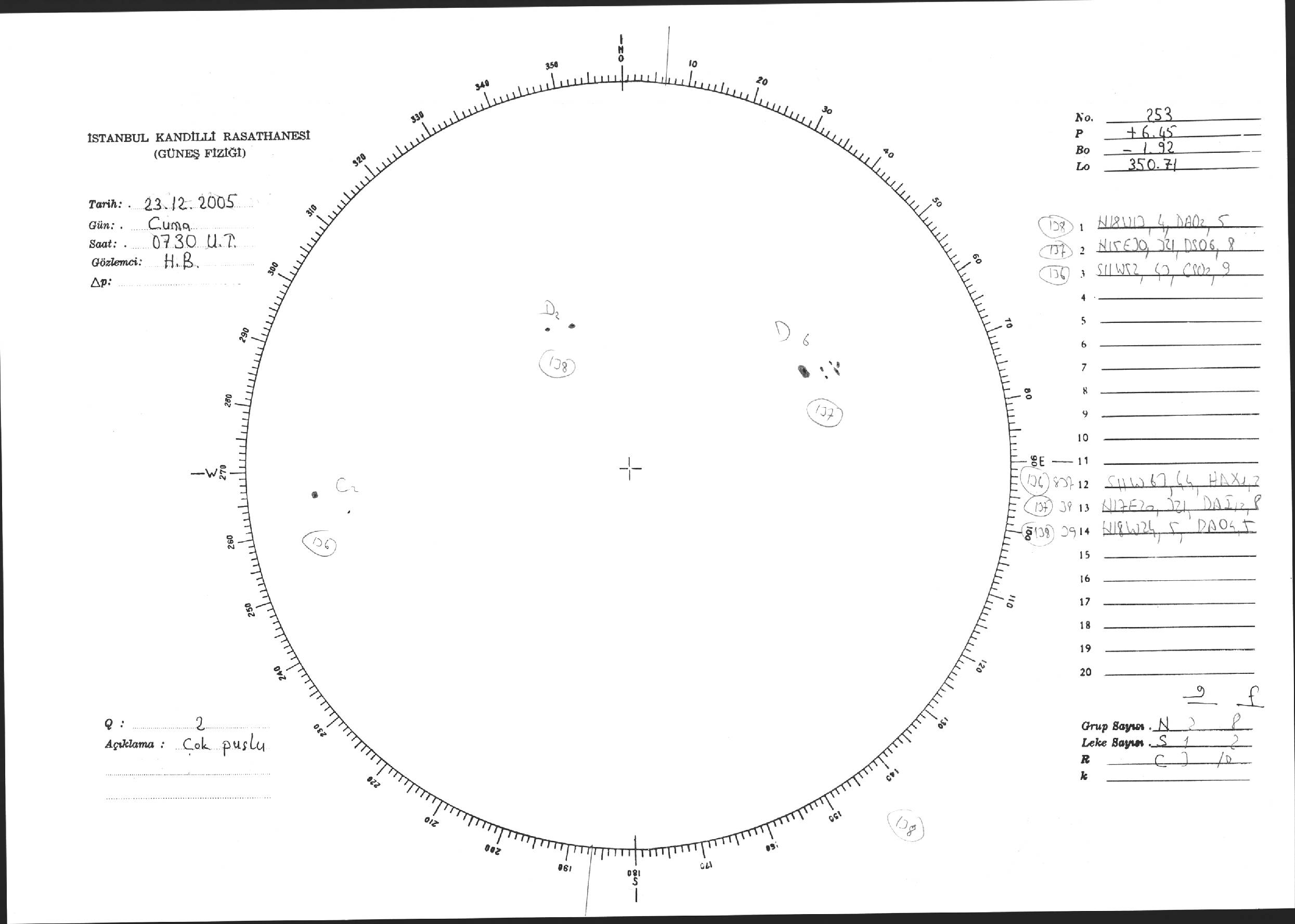 Güneş Lekesi Çizimi - 23.12.2005