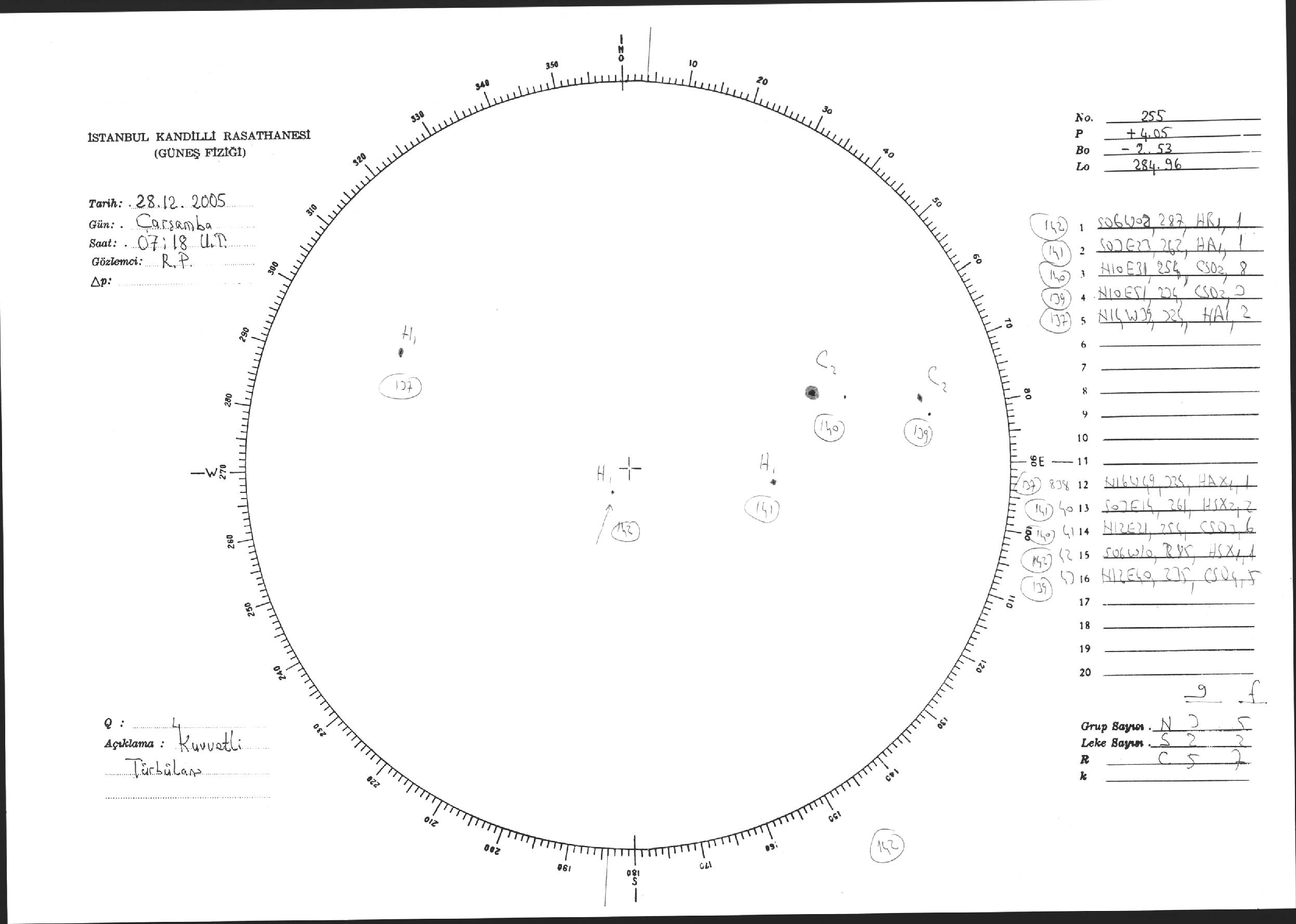 Güneş Lekesi Çizimi - 28.12.2005