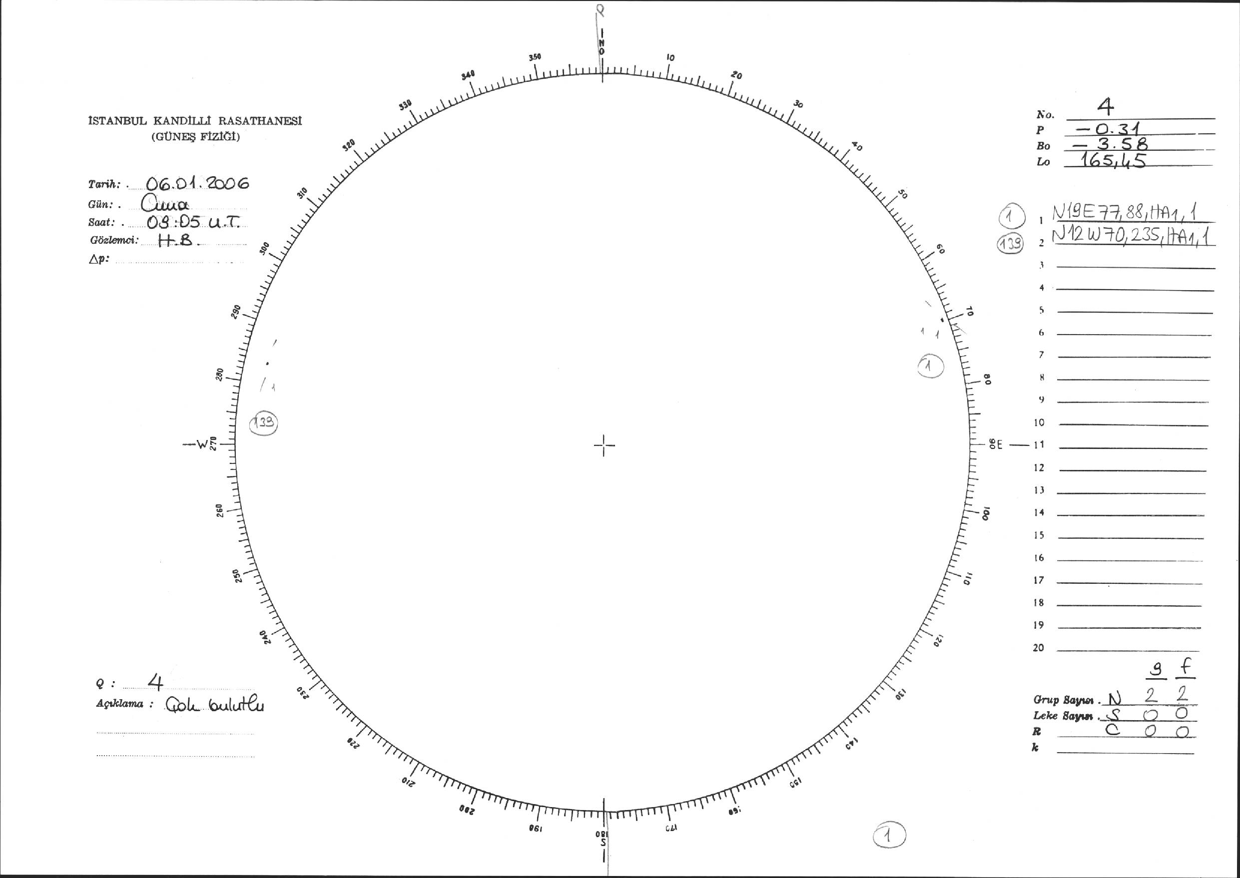 Güneş Lekesi Çizimi - 06.01.2006