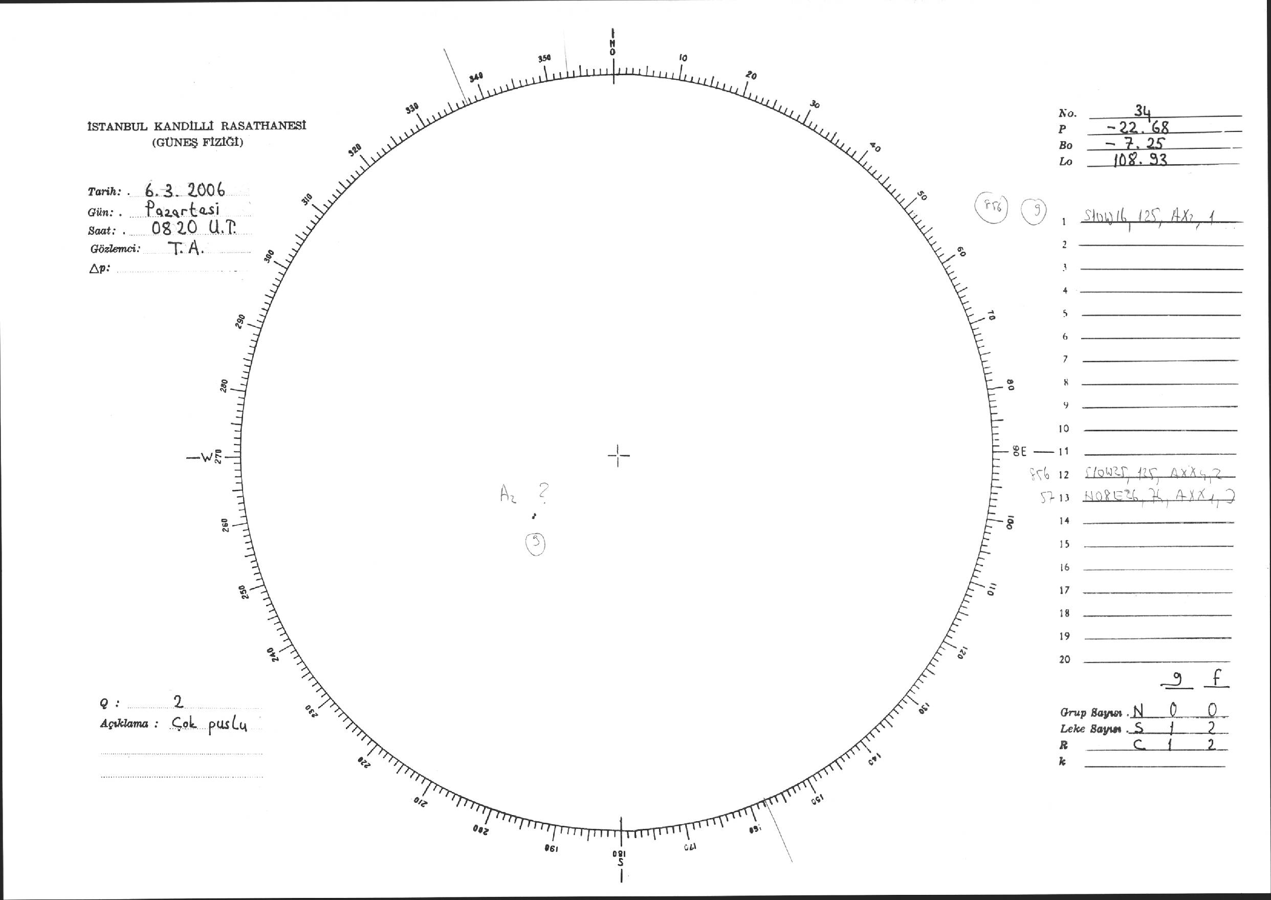 Güneş Lekesi Çizimi - 06.03.2006