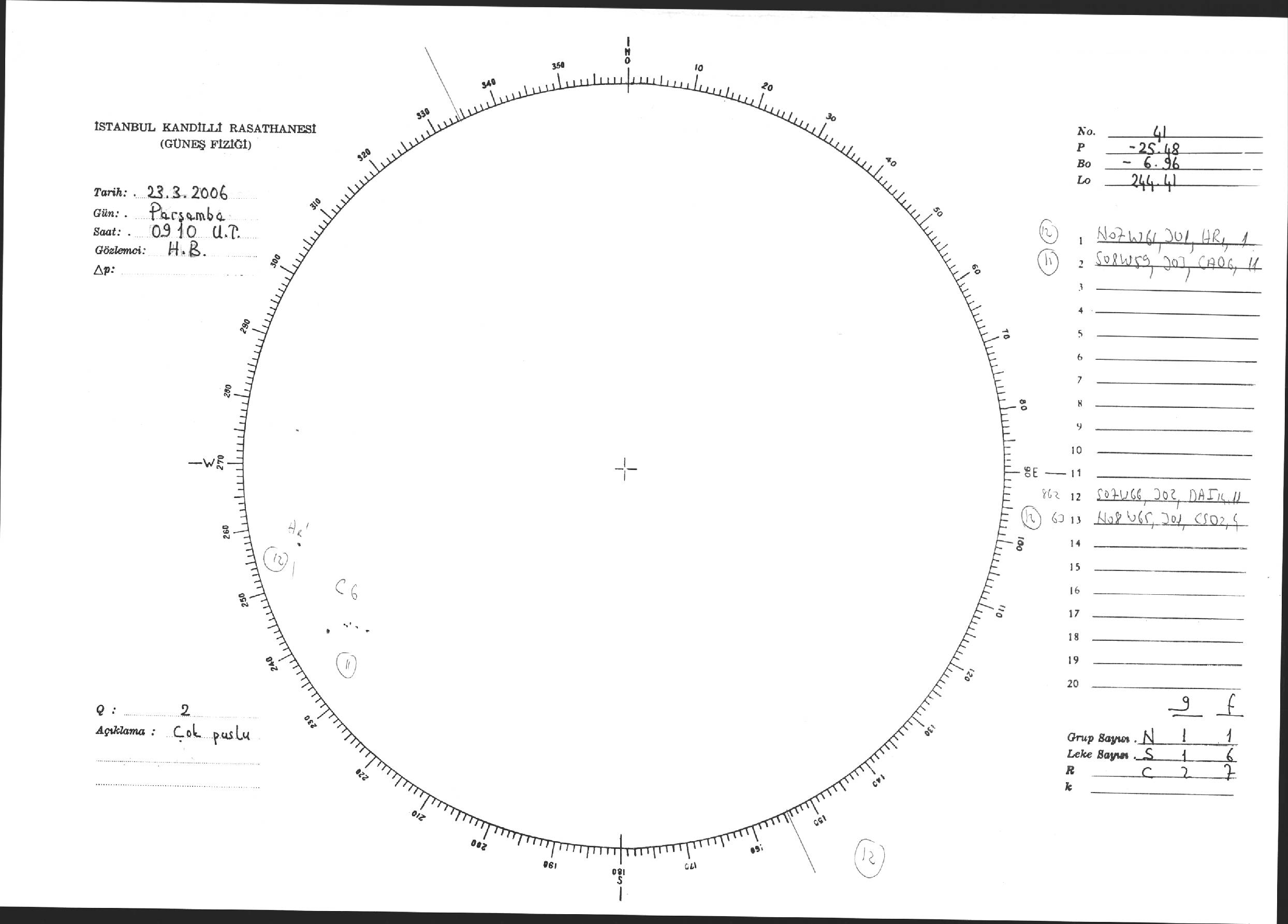Güneş Lekesi Çizimi - 23.03.2006