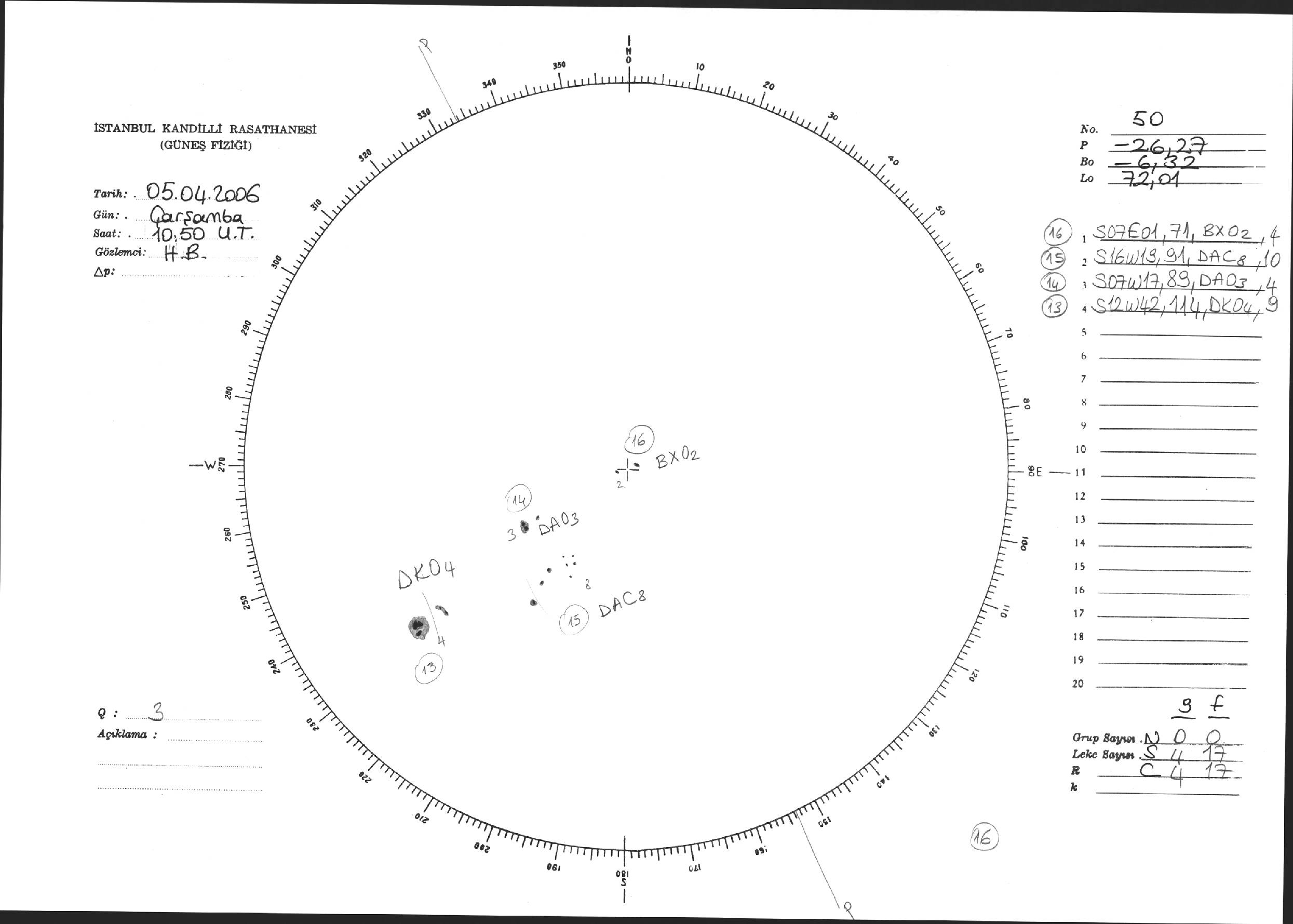 Güneş Lekesi Çizimi - 05.04.2006