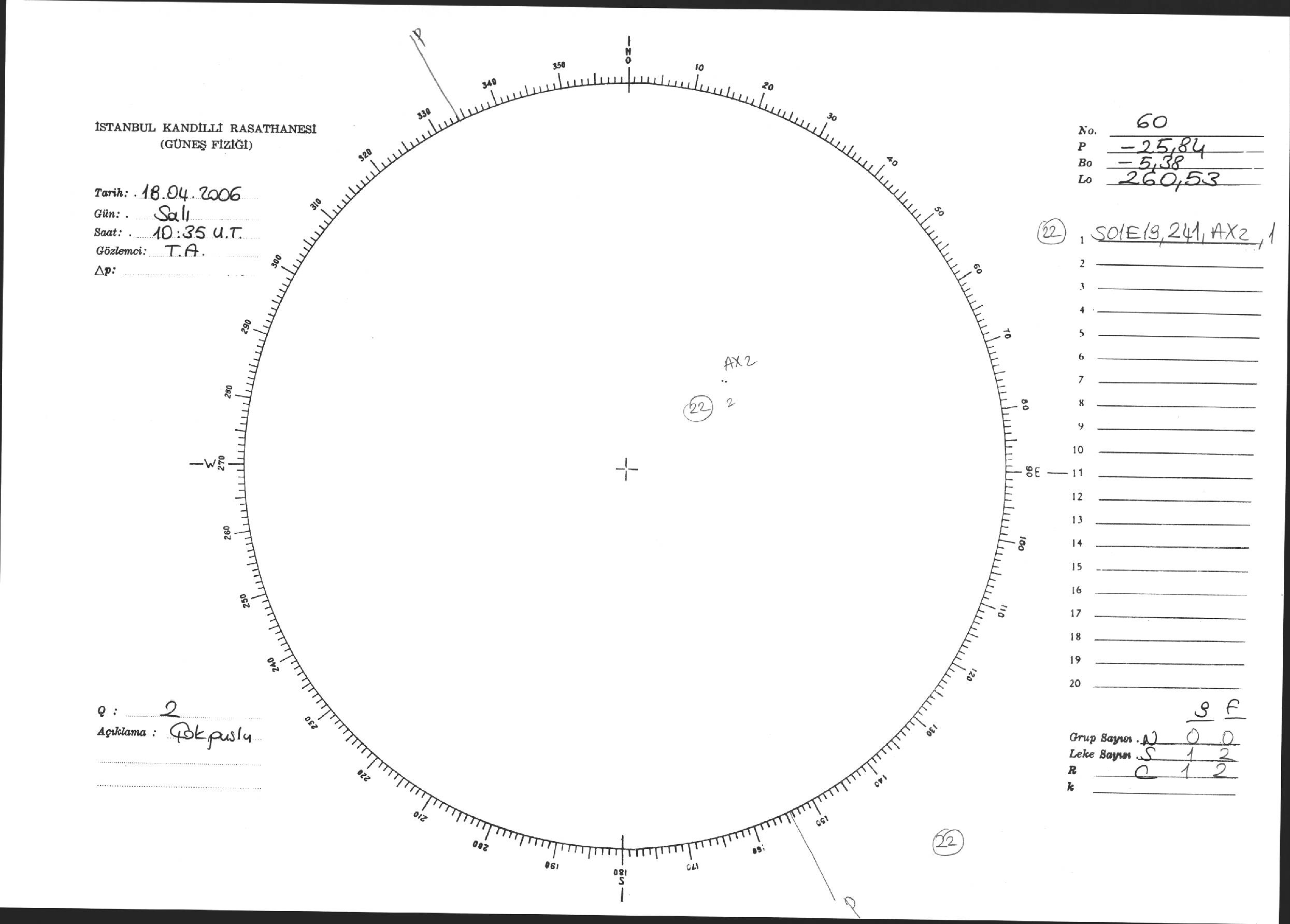 Güneş Lekesi Çizimi - 18.04.2006