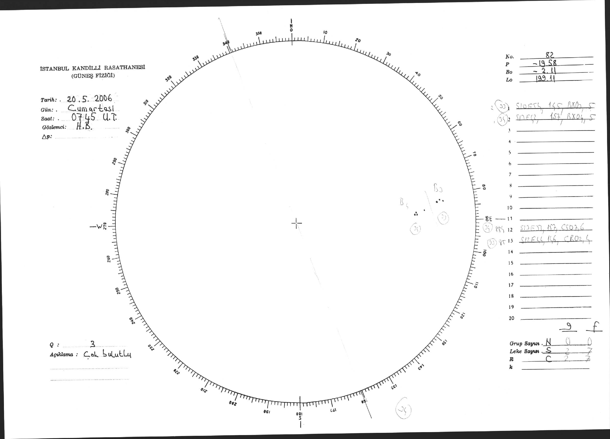 Güneş Lekesi Çizimi - 20.05.2006
